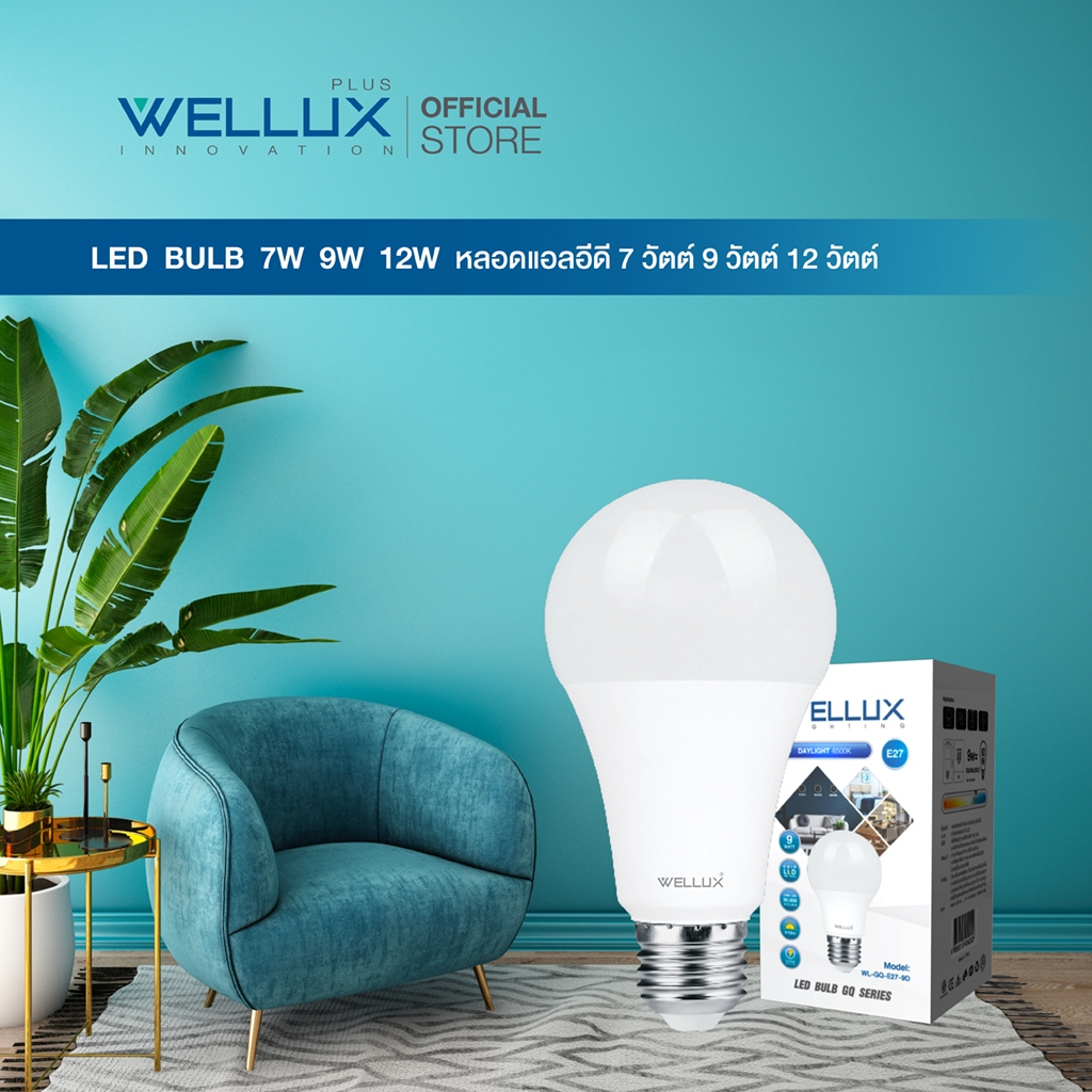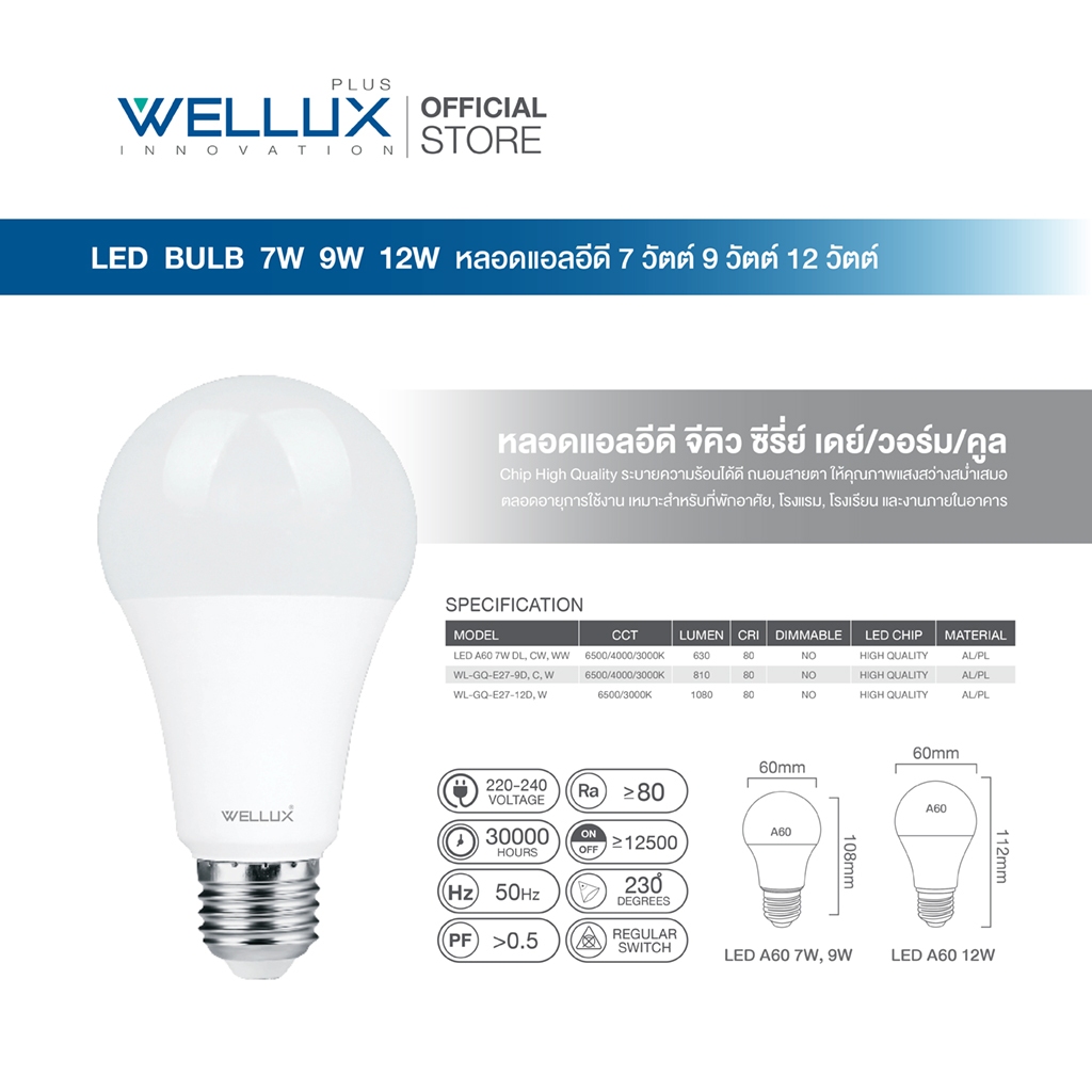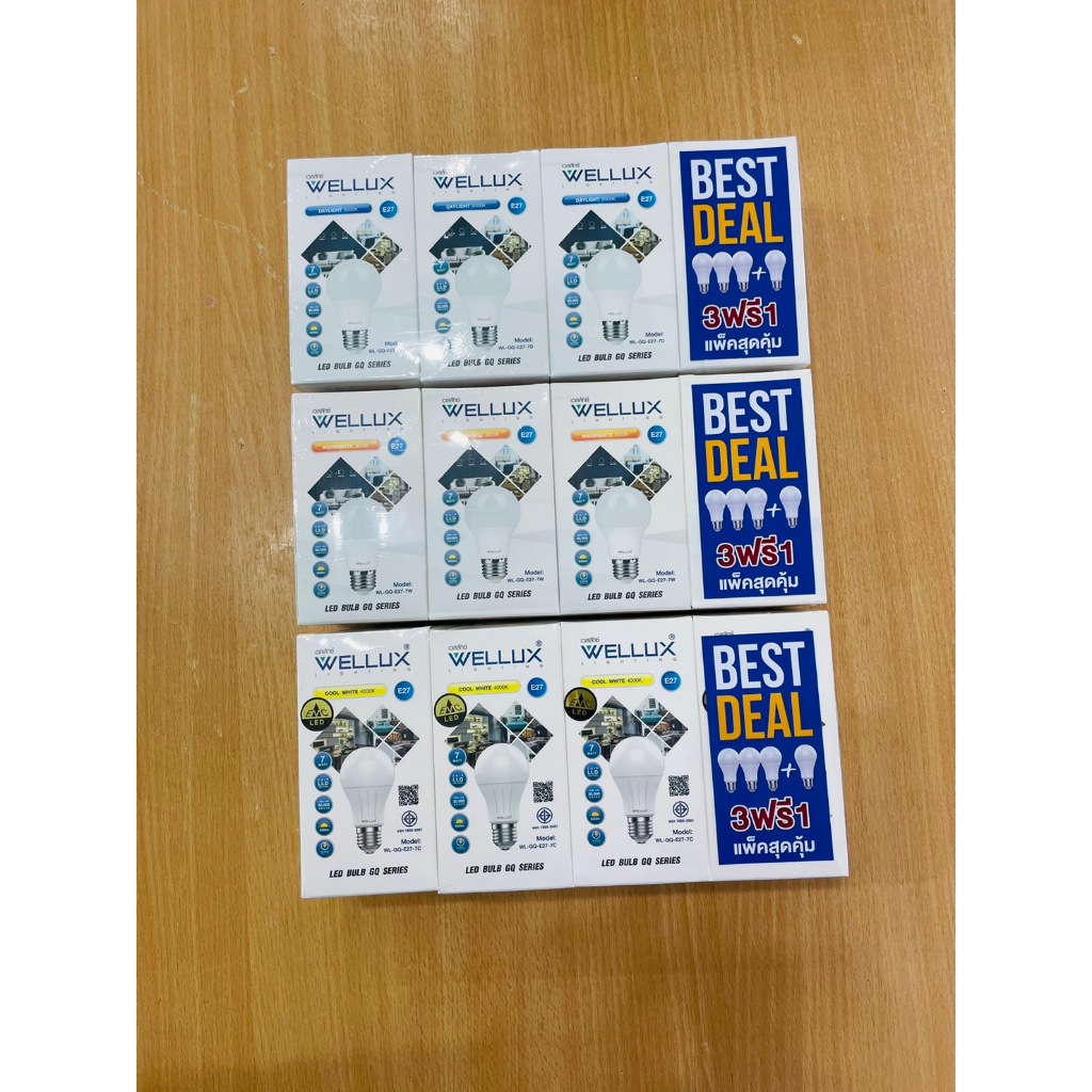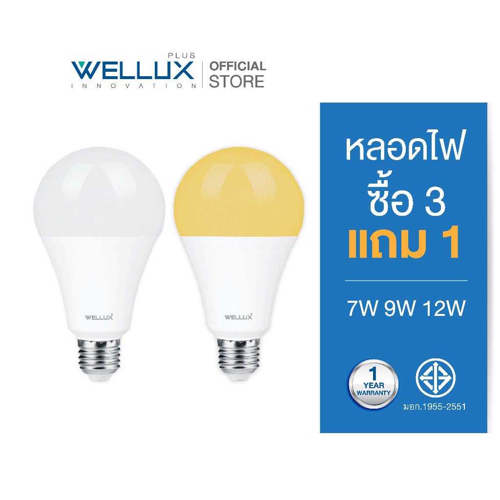 [3แถม1]WELLUX หลอดไฟแพ็คสุดคุ้ม 7W 9W 12W แสงขาว แสงวอร์ม แสงคูล LED Bulb ขั้ว E27 รับประกัน 1 ปี