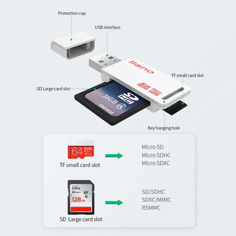 llano 2 in 1 การ์ดรีดเดอร์ USB TF / SD ขนาดเล็ก