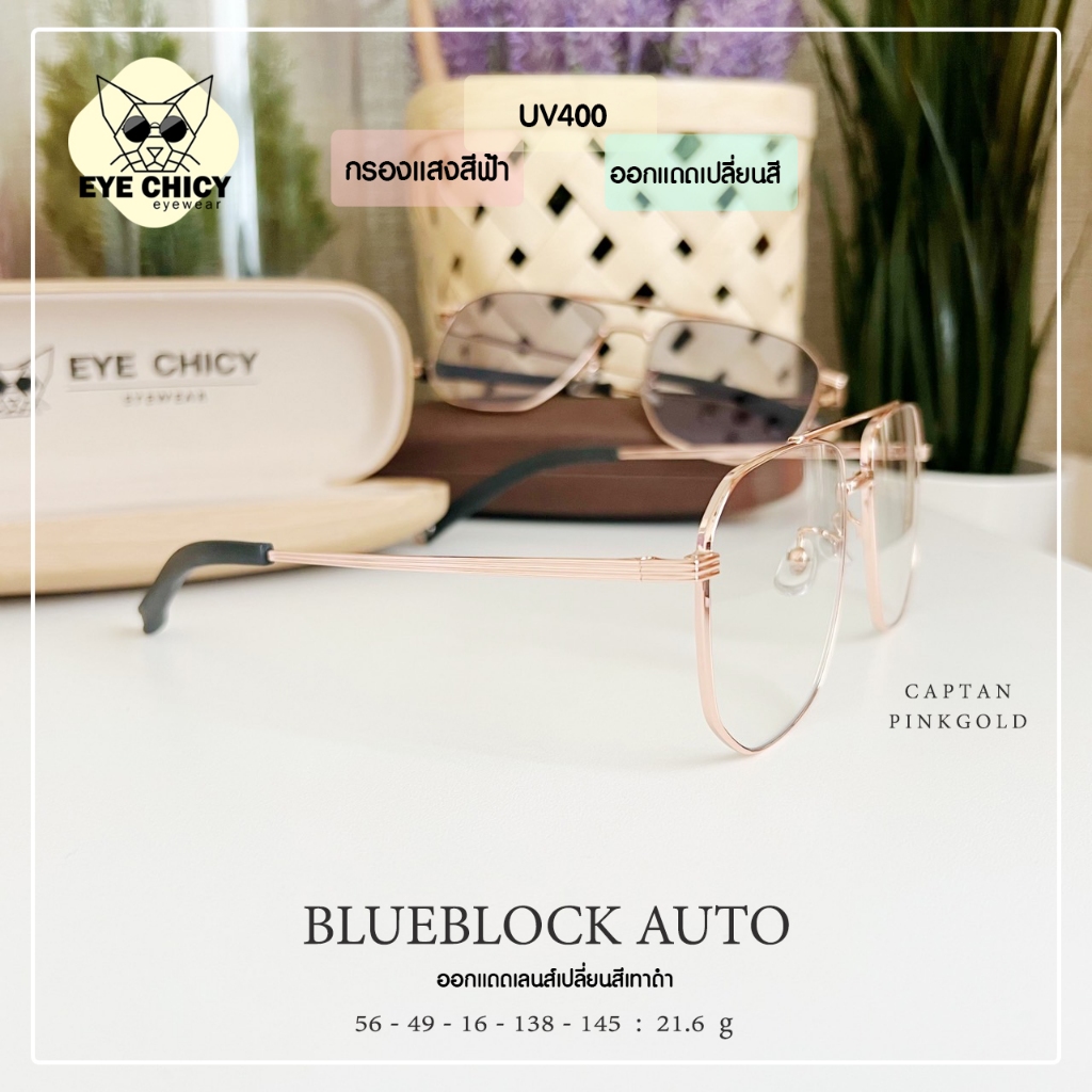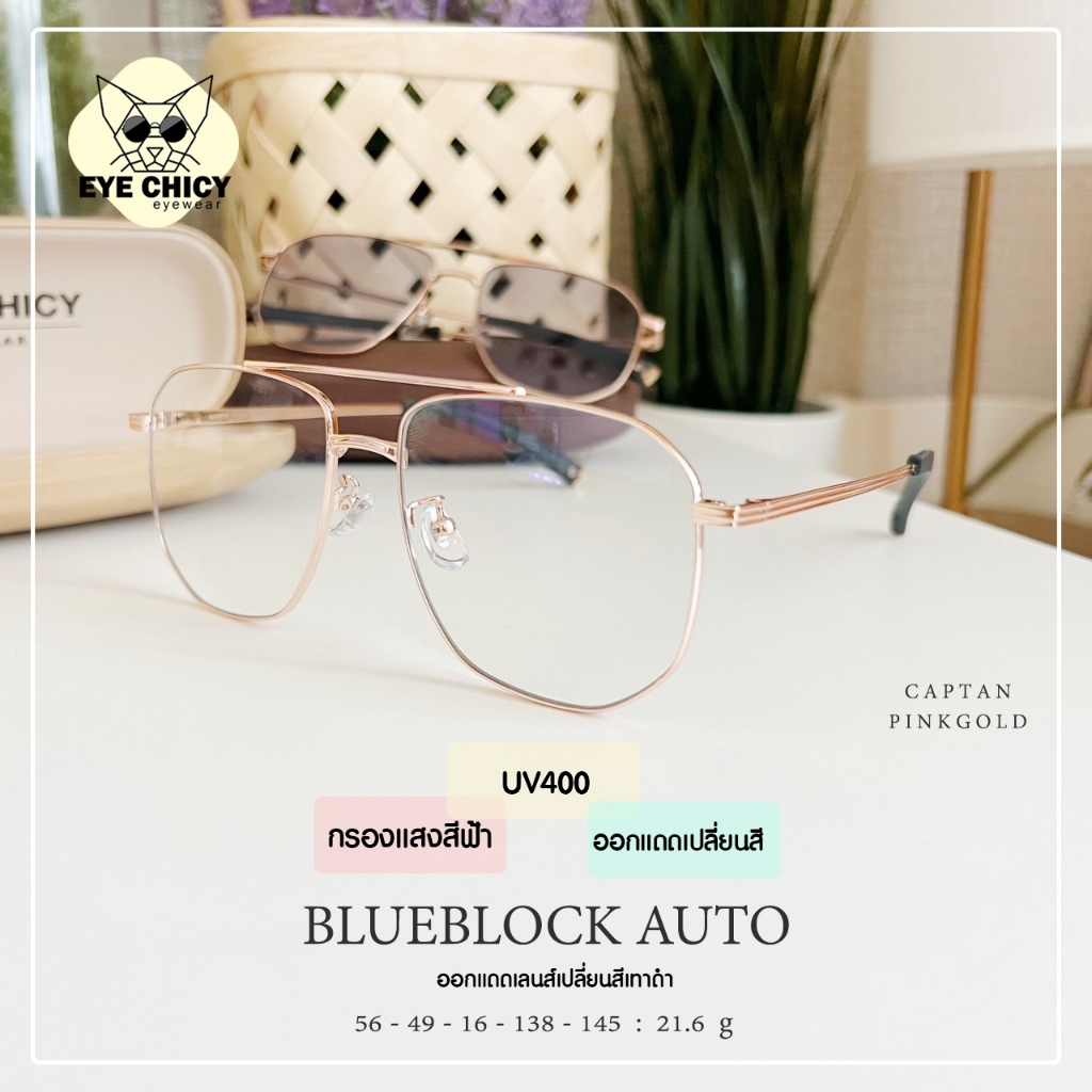 แว่นกรองแสงบลูบล็อก+ออโต้ กรองแสงสีฟ้า (Blueblock+Auto) รุ่น 246306 EYECHICY ออกแดดเลนส์เปลี่ยนสี แว่นกรองแสงคอม UV400