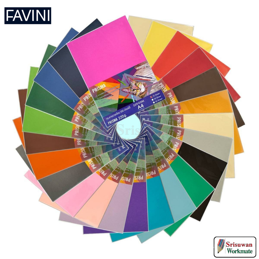 Favini กระดาษ 100 ปอนด์สี A4 หนา 220 แกรม Italy Paper รุ่น Prisma กระดาษวาดรูป วาดเขียน ร้อยปอนด์สี กระดาษสีสองหน้า