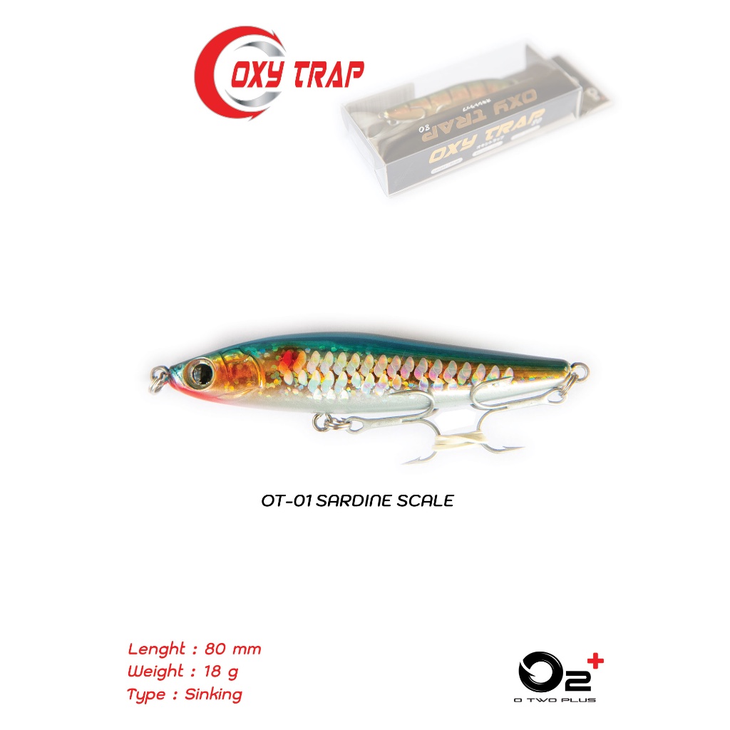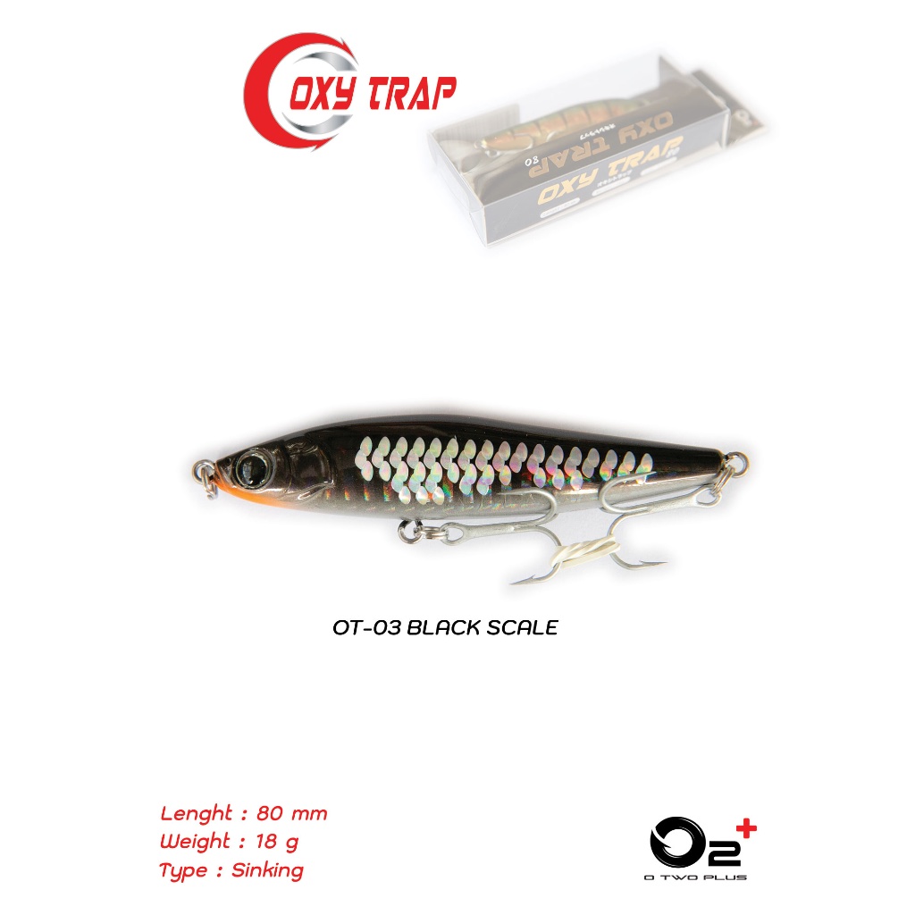 เหยื่อ O2+ Oxy Trap 80 S แอ้คชั่นจมโคลง น้ำหนัก 18 กรัม ตีไกลทำระยะได้ดี