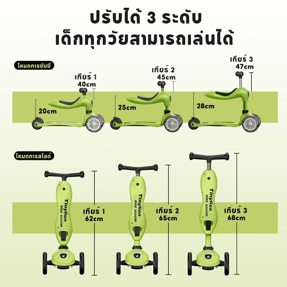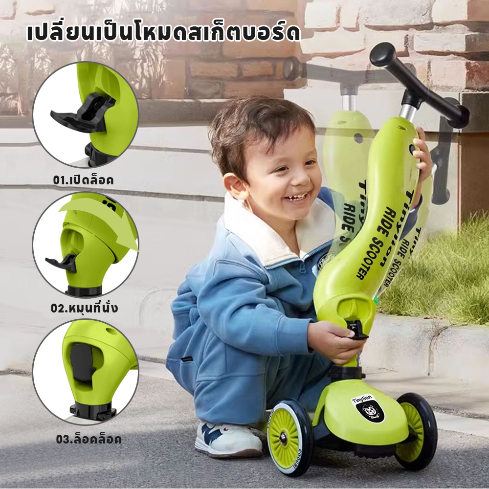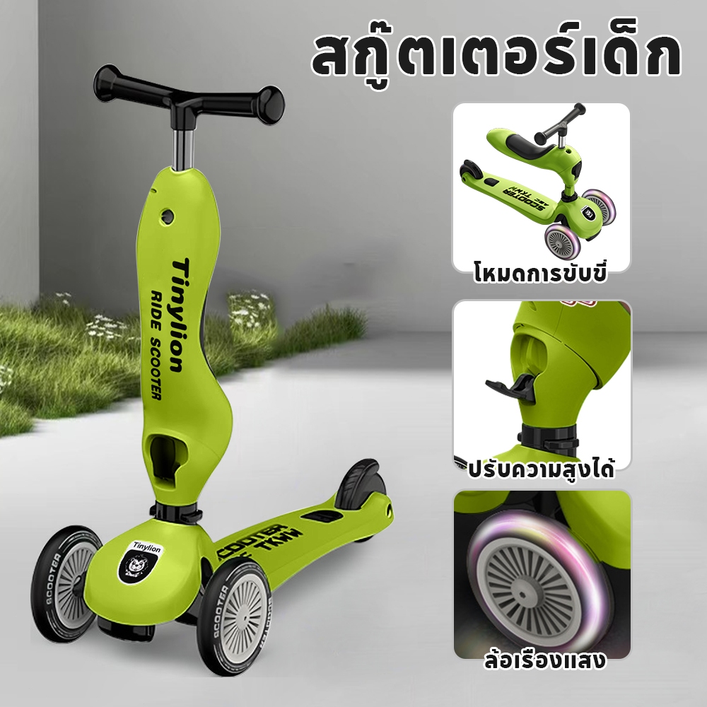 LionToys สกู๊ตเตอร์ Scooter รถขาไถ2 in1 Balance Bike ล้อใหญ่ ไฟAuto LED