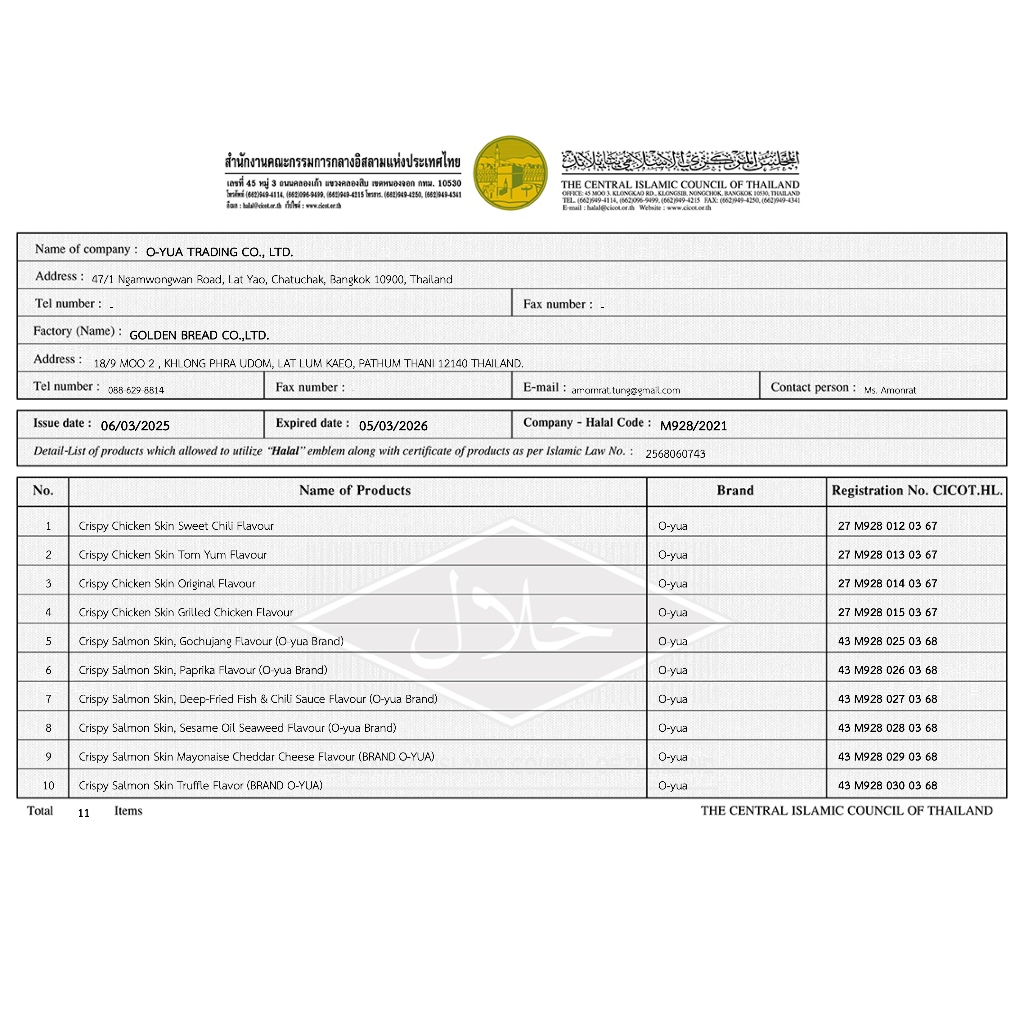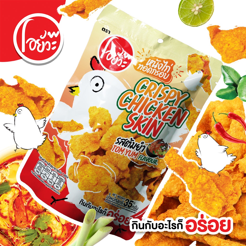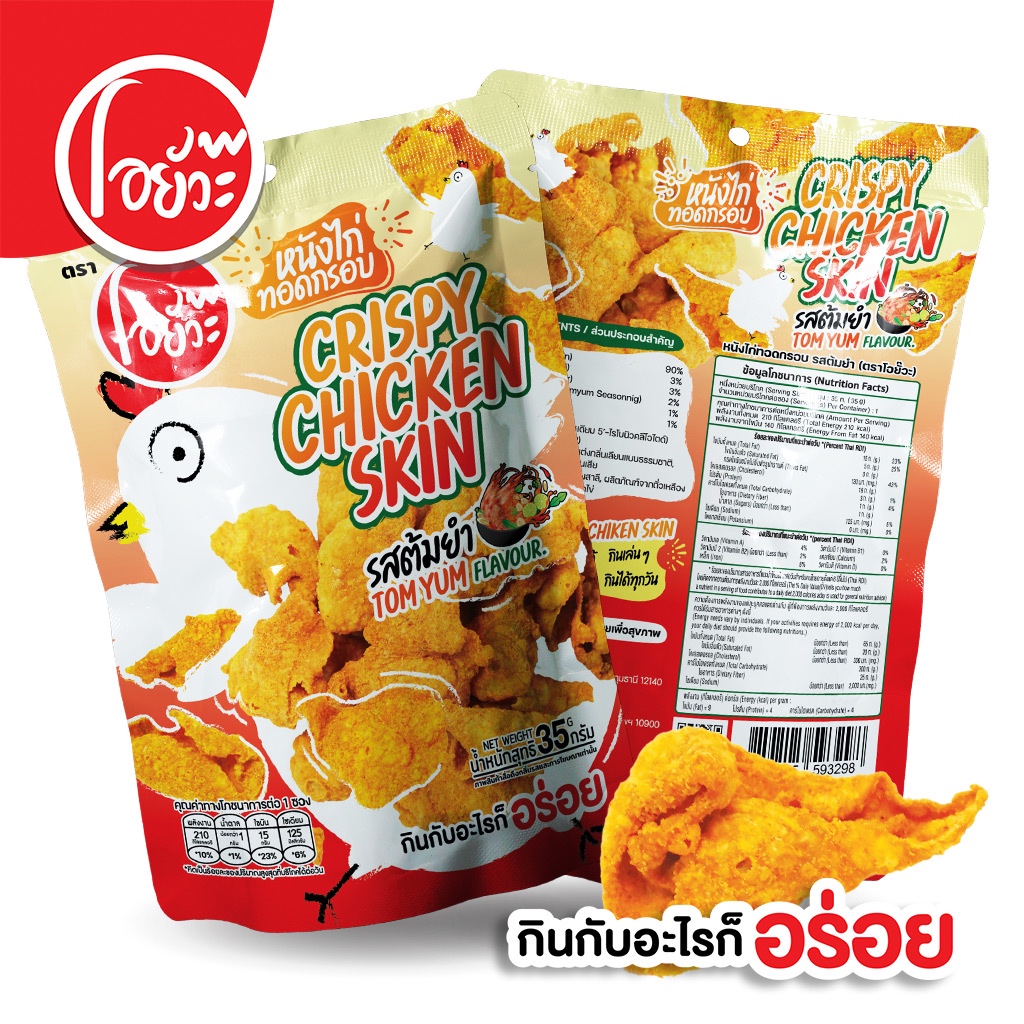 หนังไก่ทอดกรอบ รสต้มยำ ขนาด 35 กรัม Crispy Chicken Skin Tom Yum Flavour. 35 g.