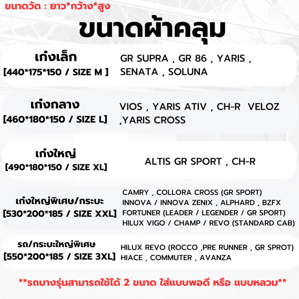 TOYOTA ผ้าคลุมรถยนต์ ทุกรุ่น ทุกขนาด หนา3ชั้น กันฝุ่น น้ำ รถ เก๋ง กระบะ FORTUNER CAMRY VIOS YARIS