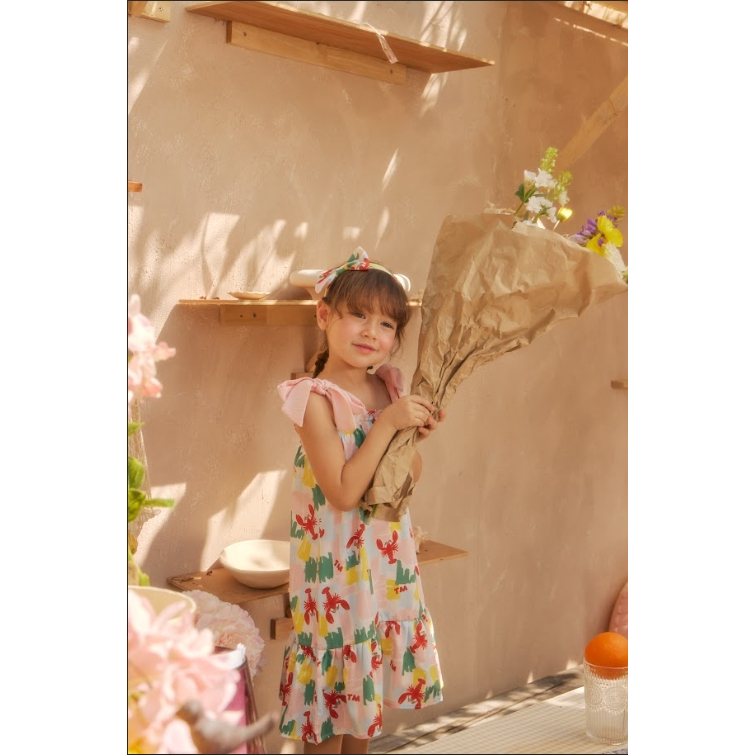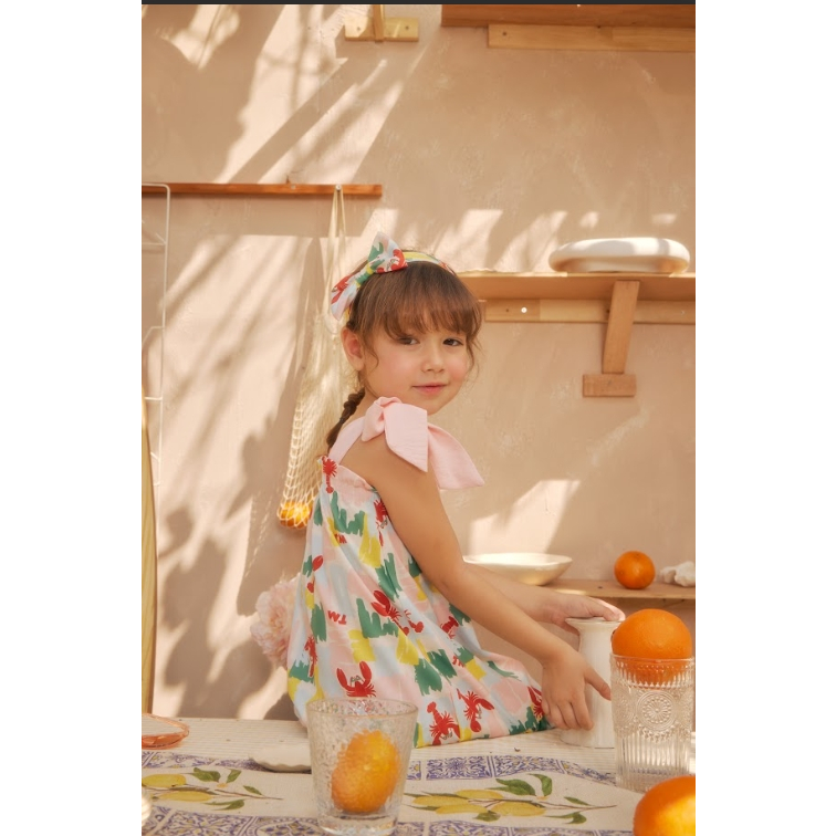 Tilly Milly ชุดเดรสเด็กผู้หญิงสม๊อคสายเดี่ยวและโบว์คาดผม ลายกุ้ง Look 04 - summer daze