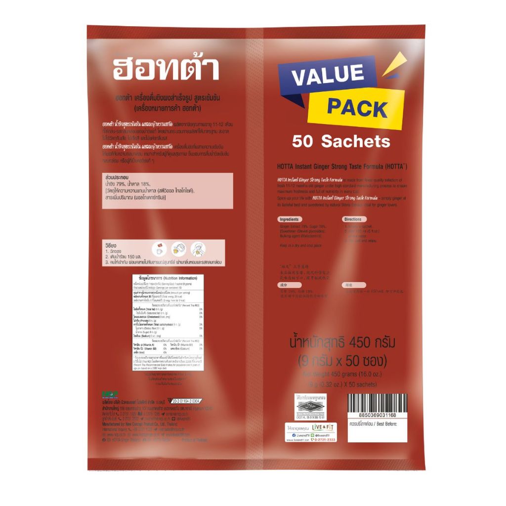 [แพ็คประหยัด] HOTTA น้ำขิงฮอทต้า เครื่องดื่มขิงผงสำเร็จรูป ขิงเข้มข้นผสมหญ้าหวานสกัด ขนาด 50 ซอง