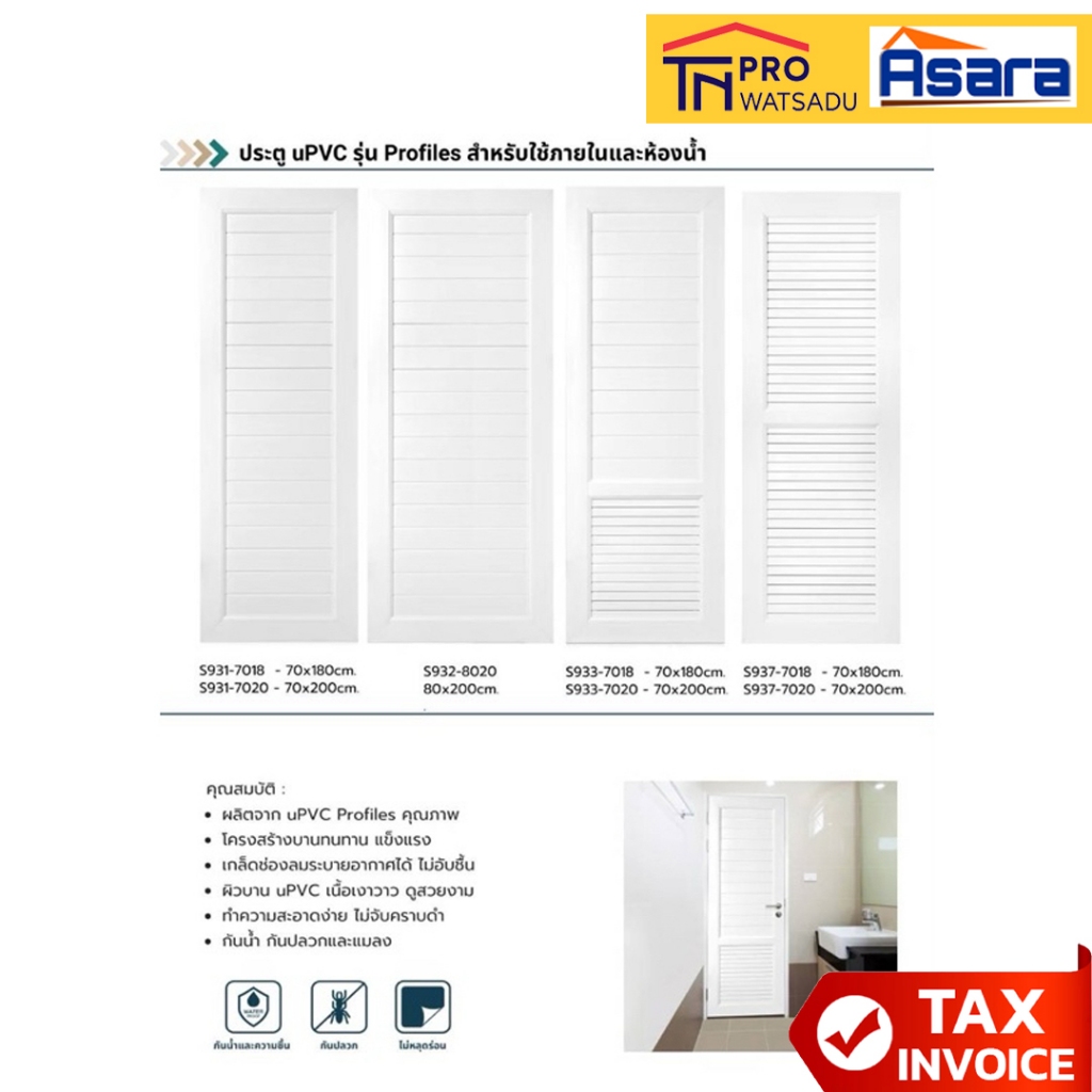 [ไม่สั่งร่วมกับสินค้าอื่น] GODO ประตูUPVCบานตาราง สำหรับใช้ภายในและห้องน้ำ ขาวทึบ ขนาด 70x180cm|70x200cm [เจาะ/[ไม่เจาะ]