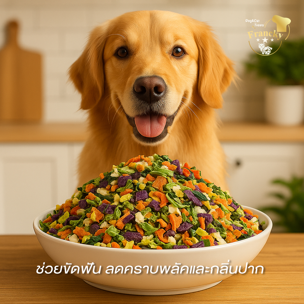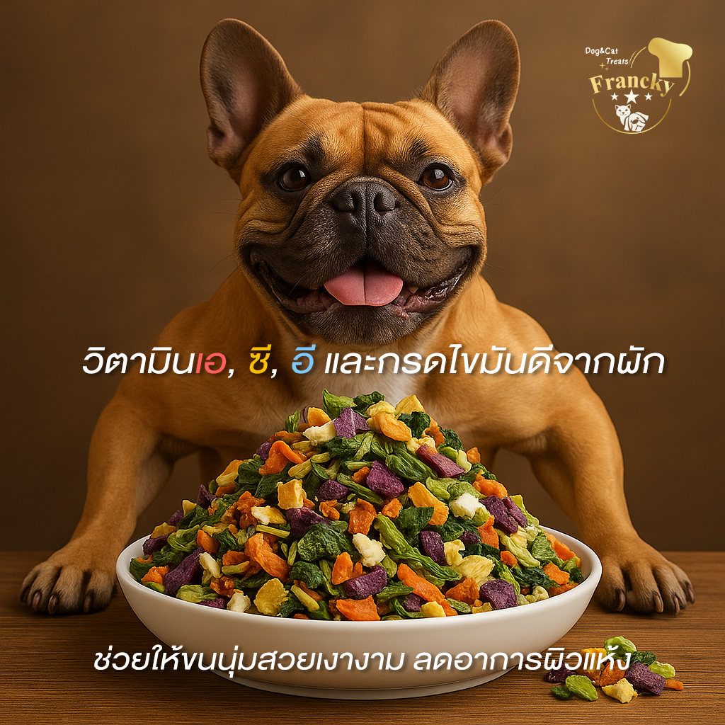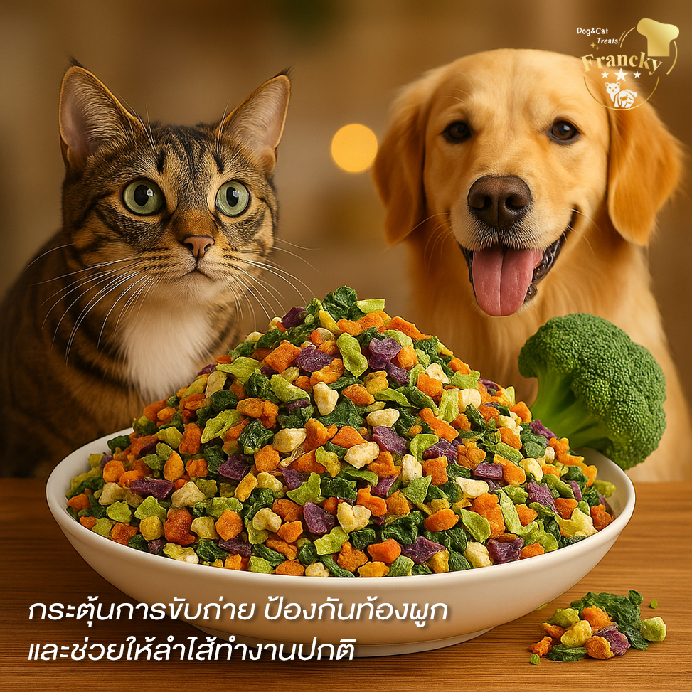 [ตัวช่วยขับถ่าย] Francky ผักรวมฟรีซดรายแท้ 50g. ไฟเบอร์สูง แก้ท้องผูก น้องหมาแมวทานง่าย เสริมวิตามิน
