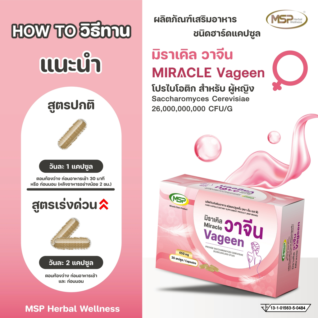 MSP โปร 2 กล่อง มิราเคิล วาจีน vageen โปรไบโอติก สำหรับผู้หญิง จากแบรนด์ [ Wellness Official ] "ของแท้ ส่งตรงจากบริษัท"