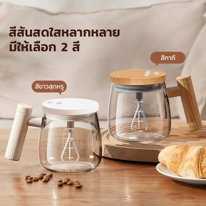 แก้วปั่นอัตโนมัติ แก้วผสมกาแฟ ชงชาเขียว ชงโปรตีนเชค ดีไซน์หัวตี 3 แฉก รุ่นชาร์จ Type-C ความจุ 400ml