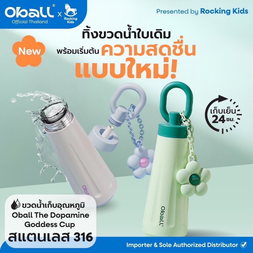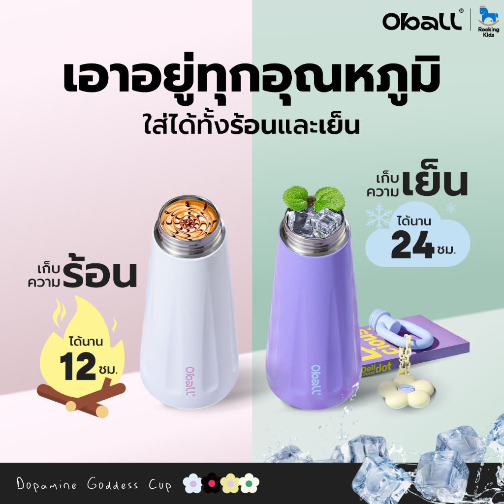 แก้วน้ำเก็บอุณหภูมิ เก็บความเย็นนาน 24 ชม. Oball รุ่น The Dopamine Goddess Cup Plus ความจุ 500 ML