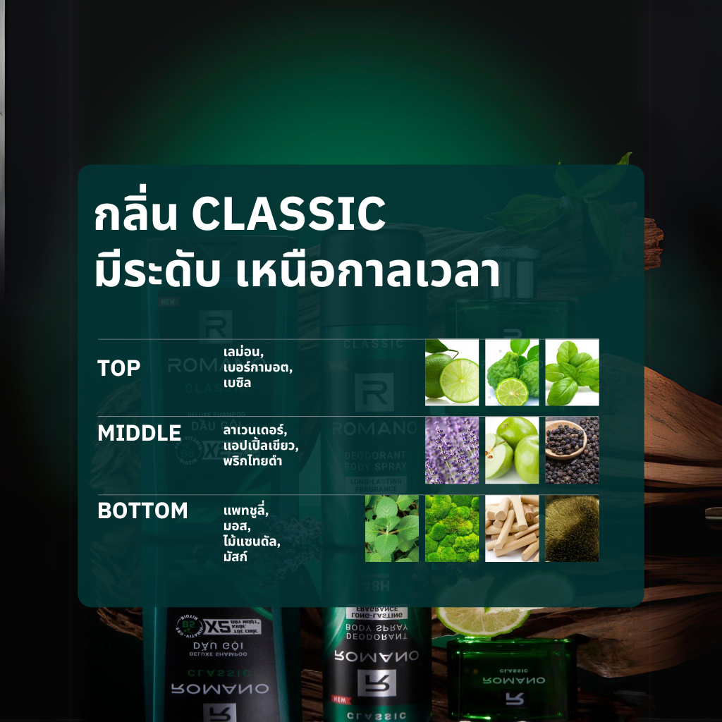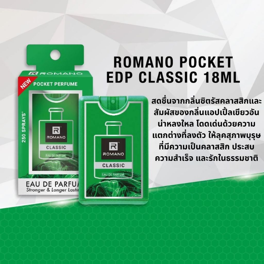 ROMANO EAU DE PARFUM CLASSIC 18 ML / โรมาโน่ น้ำหอม EDP คลาสสิค 18 มล. (น้ำหอมผู้ชาย, หล่อสะกดใจ)