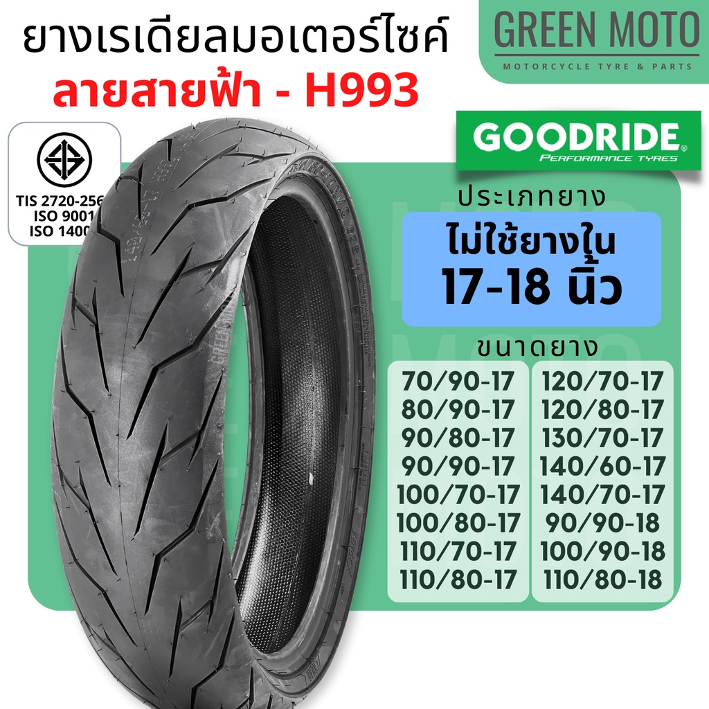 [ยางใหม่] ยางเรเดียลมอเตอร์ไซค์ GOODRIDE กู้ดไรด์ H993 ลายสายฟ้า TL (Tubeless) ขอบ 17 นิ้ว ไม่ใช้ยางใน Wave / Dream
