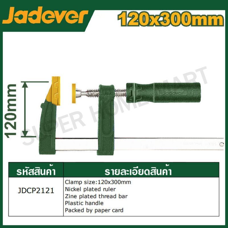 Jadever ปากกาจับชิ้นงาน ตัวเอฟ ขนาด 50 มม. / 80 มม. / 120 มม. ( F-Clamp with Handle ) ปากกาอัดไม้ แคล้มจับชิ้นงาน