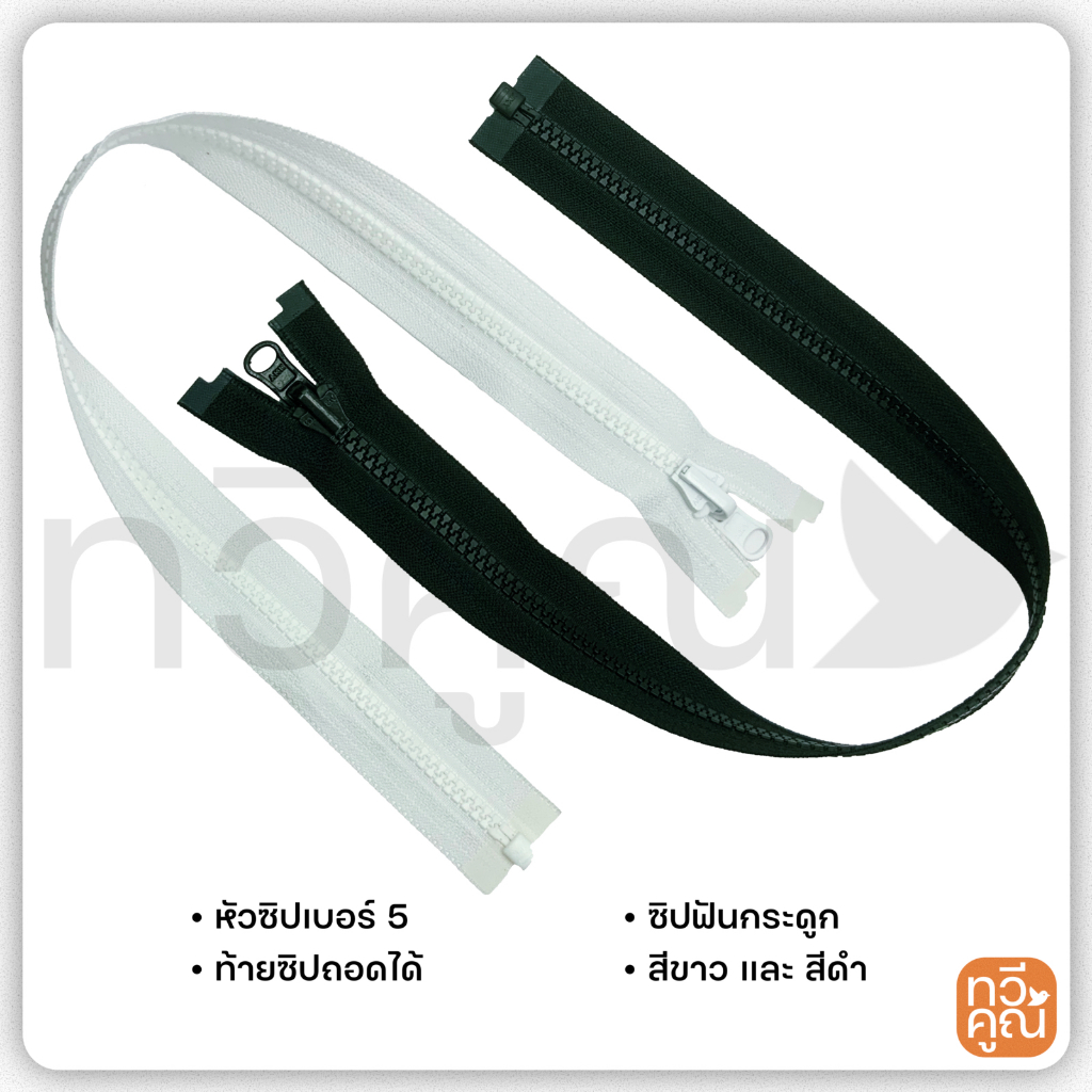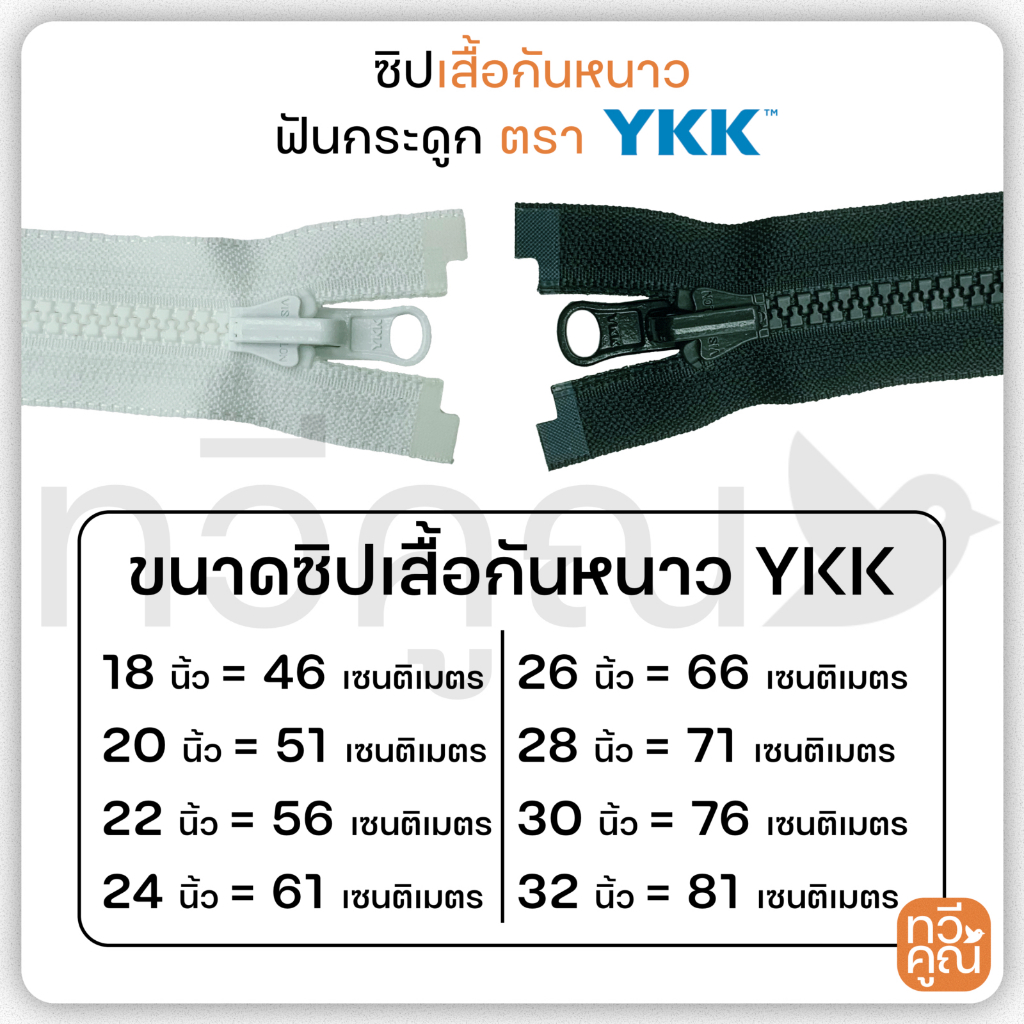 ซิปเสื้อกันหนาว YKK ซิปฟันกระดูก ซิปถอดได้ สีขาวและสีดำ