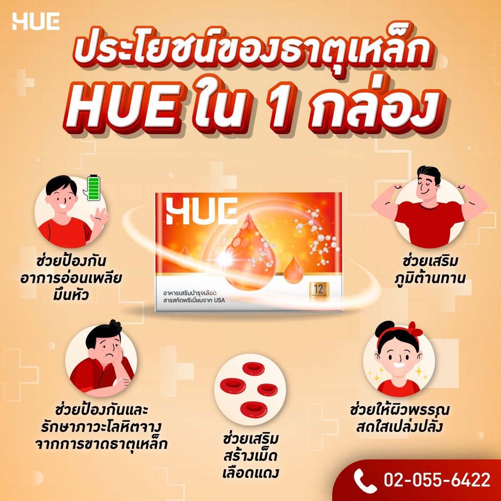HUE อาหารเสริมบำรุงเลือด สูตรวิจัยแก้ปัญหาเลือดจาง วิงเวียน อ่อนเพลีย บ้านหมุน โปร 4 แถม 3 กล่อง