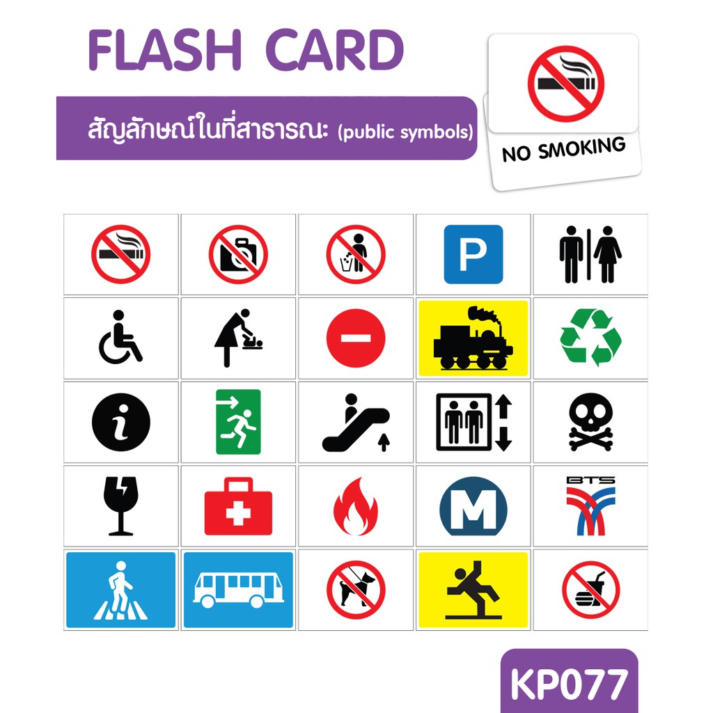 flashcard แฟลชการ์ด บัตรคำศัพท์ใหญ่ [ หมวดสัญลักษณ์ในที่สาธารณะ Public symbol ]