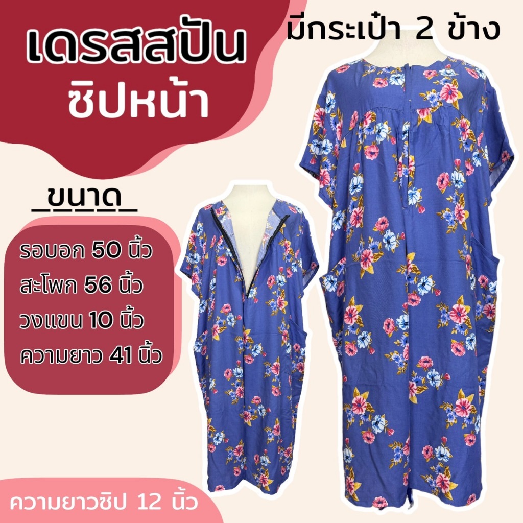 ชุดนอน ซิปหน้า ผ้าสปัน ผ้านิ่มใส่สบาย กระโปรง ไม่หดน้ำ ไม่ตกสี (B04)