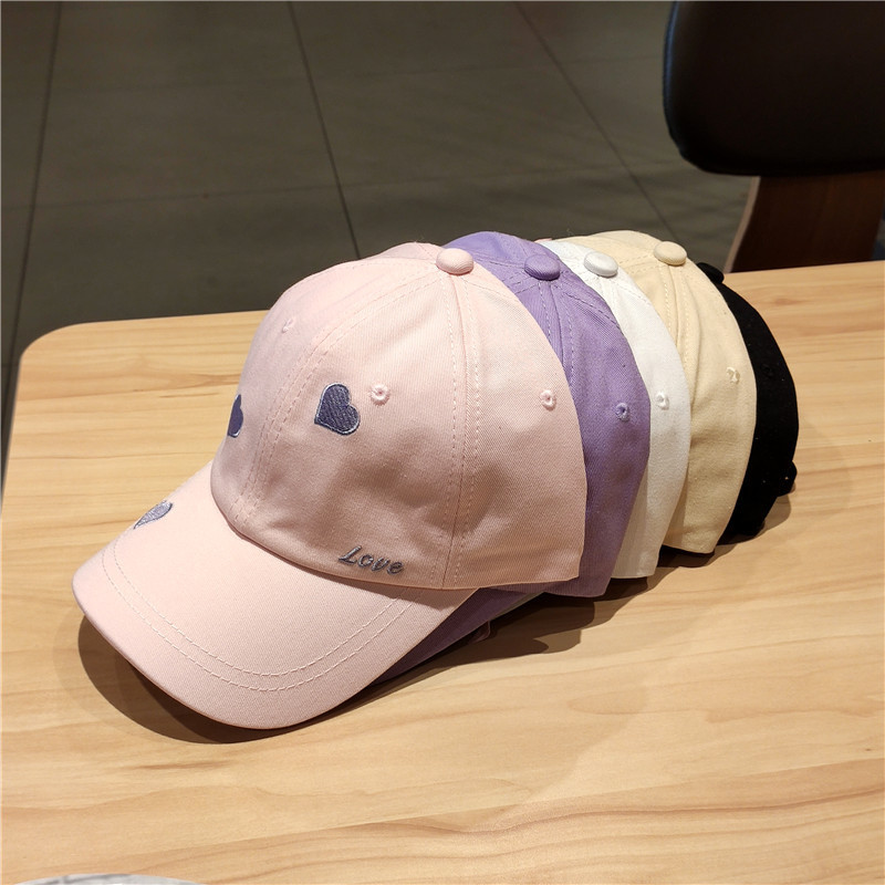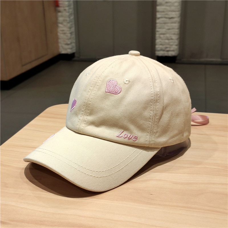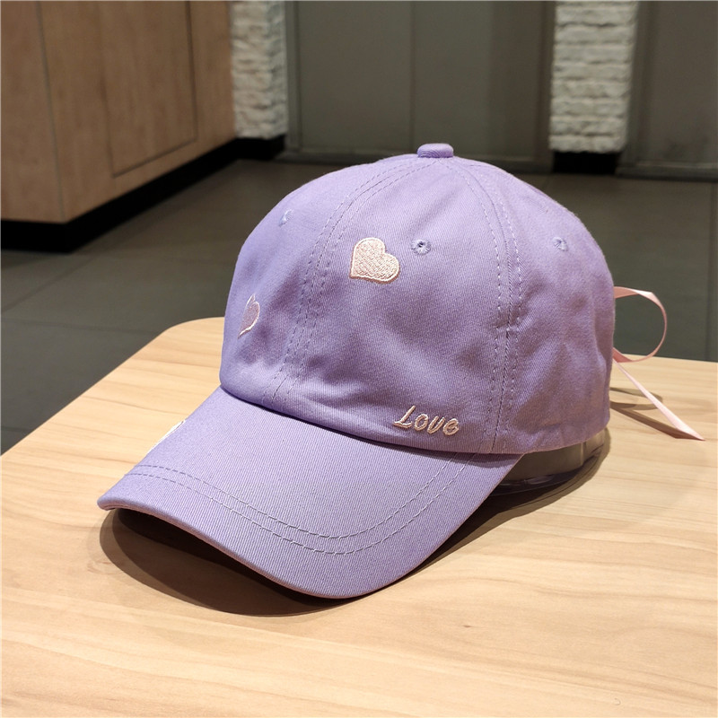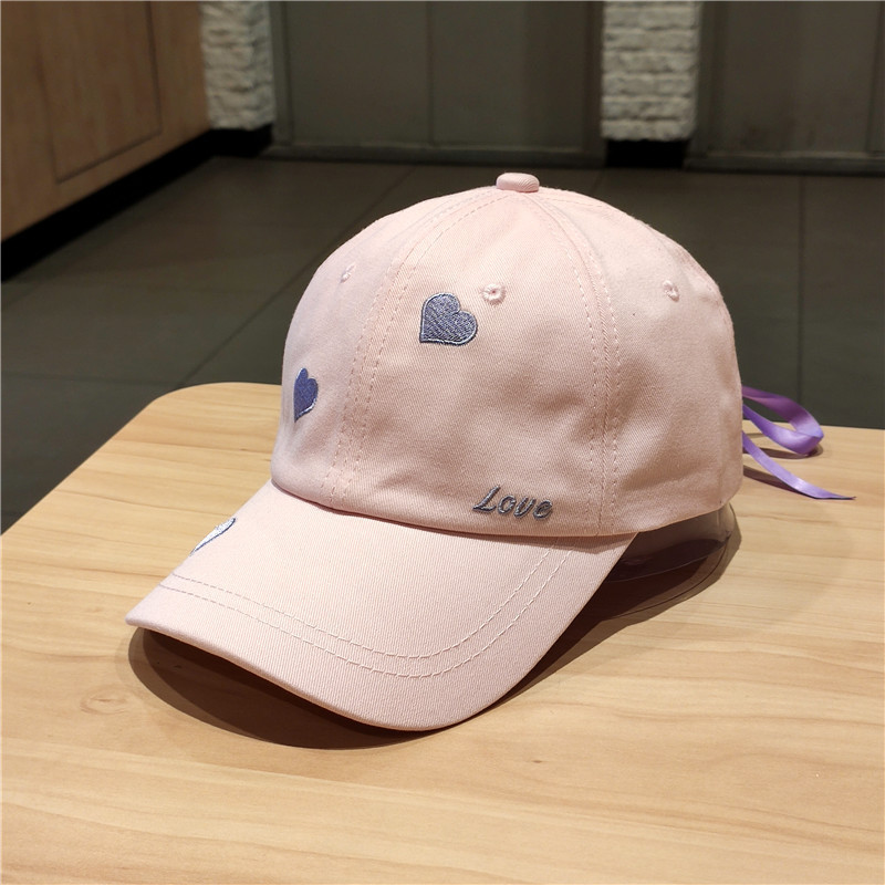 หมวกเบสบอล ผ้าฝ้ายแท้ ปักลายหัวใจ ประดับโบว์
