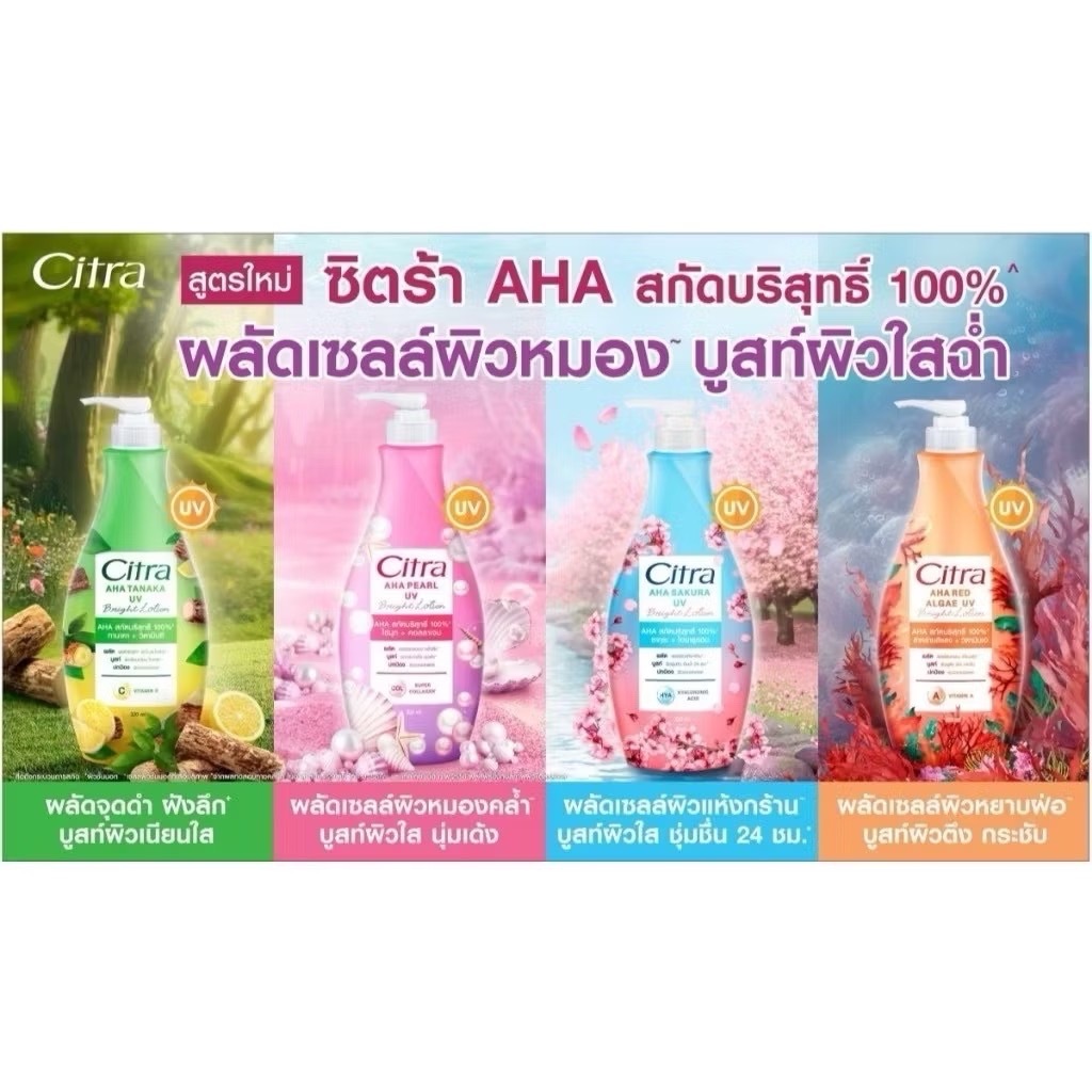 Citra {1ขวด และแพคคู่} ซิตร้า บอดี้โลชั่นหัวปั๊ม 300มล. Citra โลชั่น ซิตร้า เพิร์ลลี่ ไบรท์ ยูวี โลชั่น 4 กลิ่น