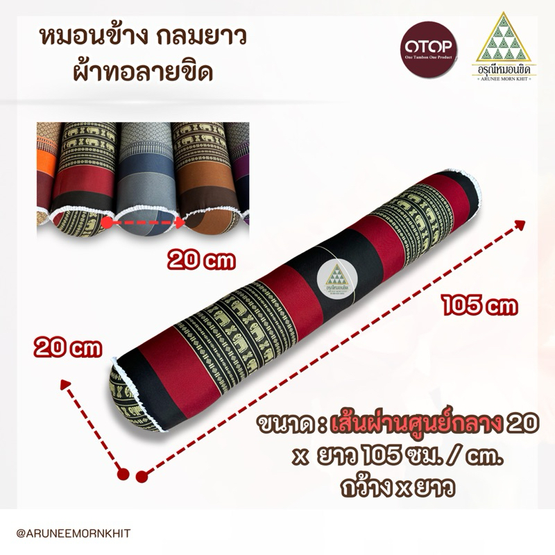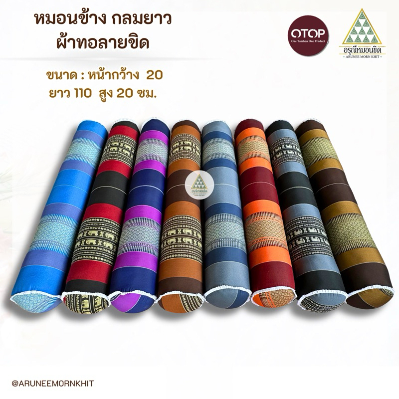 หมอนข้างกลมยาว ผ้าลายขิด ขนาด : หน้ากว้าง 20 ยาว 105 สูง 20 ซม. ยัดนุ่นล้วน นุ่นแท้ 100%