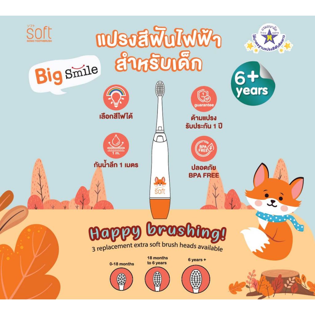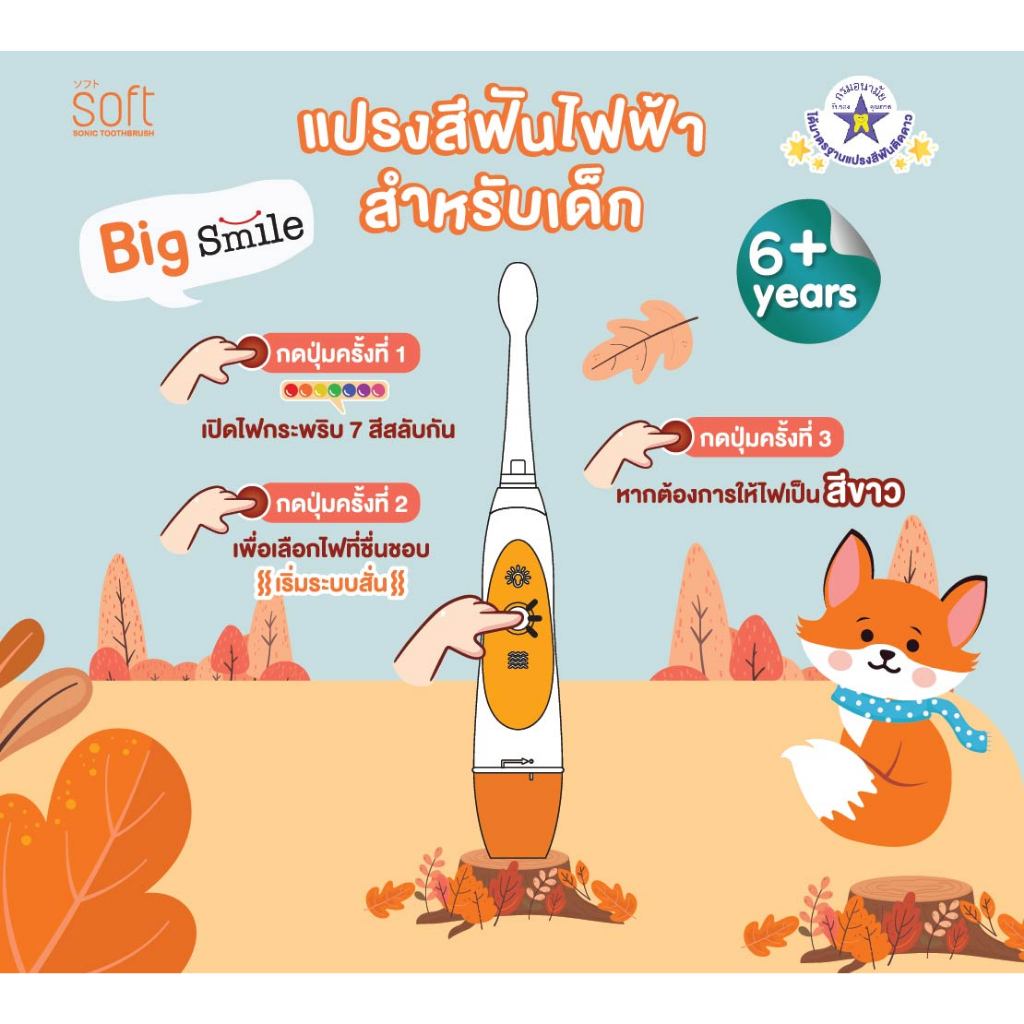 แปรงสีฟันเด็ก แปรงสีฟันไฟฟ้าระบบโซนิค SOFT รุ่น Big Smile สำหรับเด็ก 6ขวบขึ้นไป