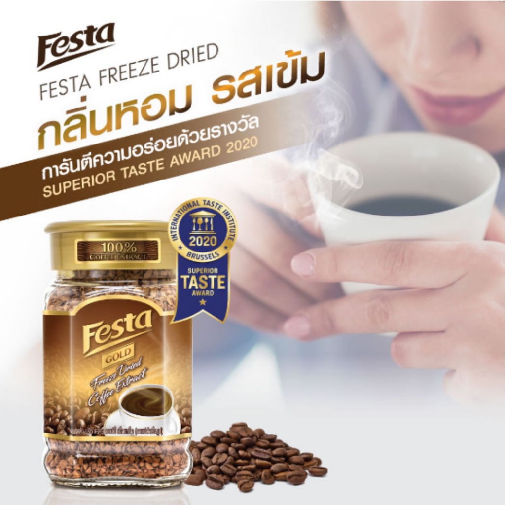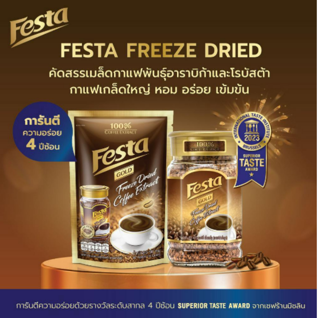 (ยกลัง 12 ถุง) FESTA FREEZE DRIED COFFEE EXTRACT- กาแฟเฟสต้า ฟรีซ ดราย กาแฟดำคั่วบด 100 กรัม