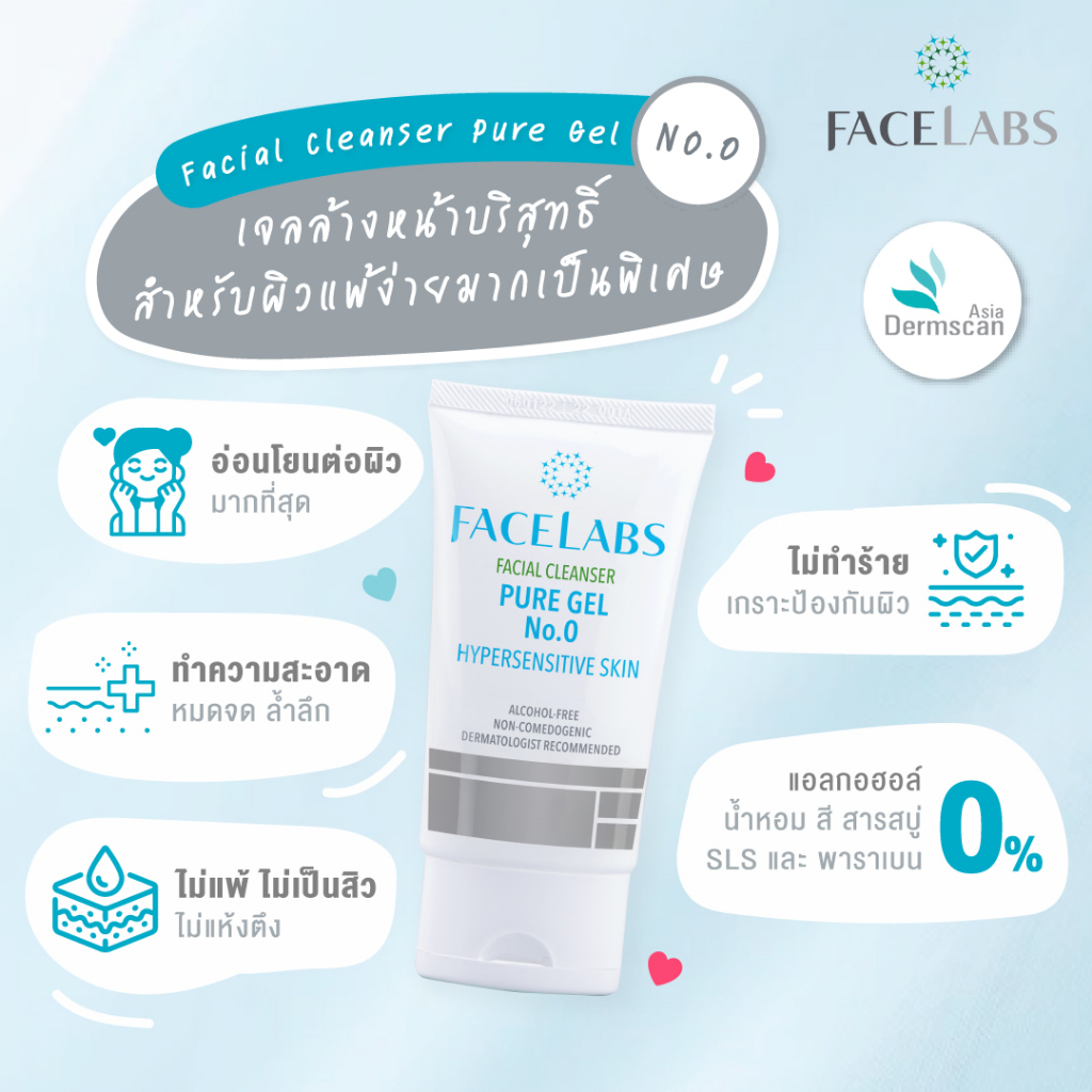 (แพ็คคู่) เจลล้างหน้า ผิวแพ้ง่าย FACELABS Cleanser Pure Gel No.0 50 ml. คลีนเซอร์ผิวแพ้ง่าย อ่อนโยน ไม่ระคายเคือง