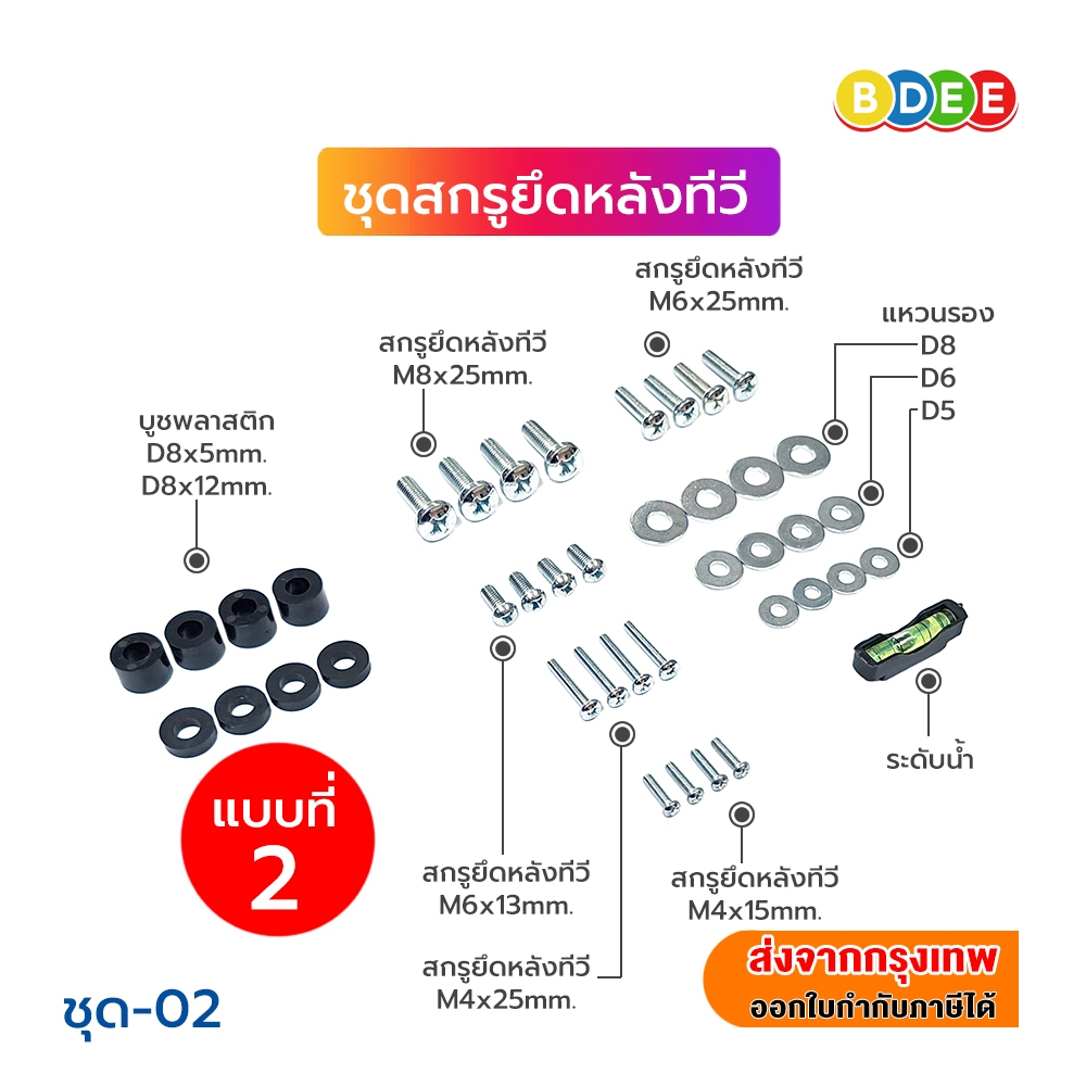BDEE ชุดสกรูยึดด้านหลังทีวี มีให้เลือก 3 แบบ ขนาดทีวี ตั้งแต่ 21-100 นิ้ว