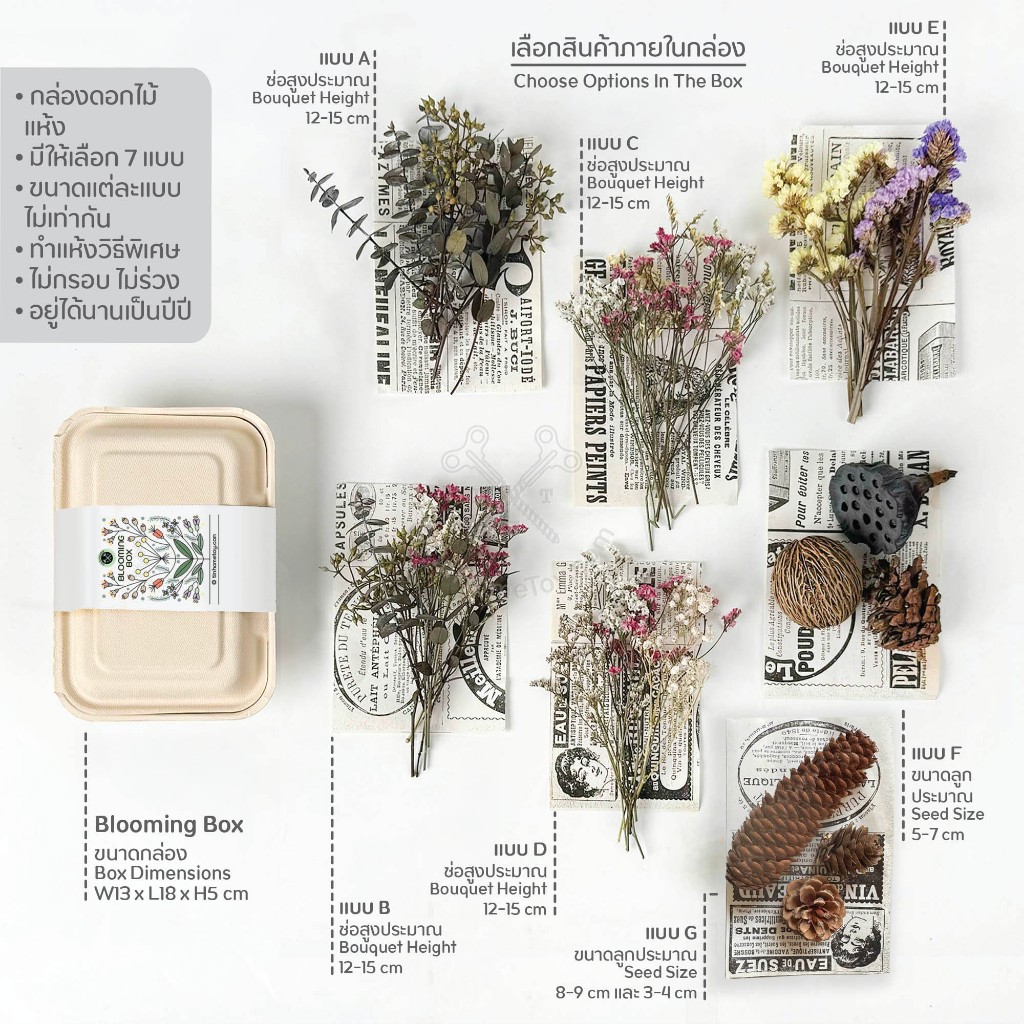 Blooming Box กล่องของขวัญดอกไม้แห้ง | อบ แห้ง ธัญพืช ต้นไม้ ดอกไม้ ใบไม้ ไม้เลื้อย ไม้ประดับ กิ่ง ก้าน ของขวัญ แจกัน