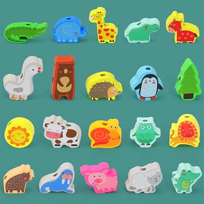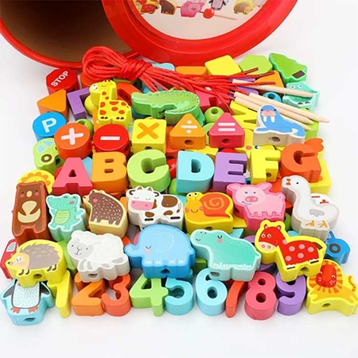 100Pcs ของเล่นเด็ก ของเล่นไม้ร้อยเชือก บล็อกไม้ร้อยเชือก ของเล่นเด็กเสริมพัฒนาการ