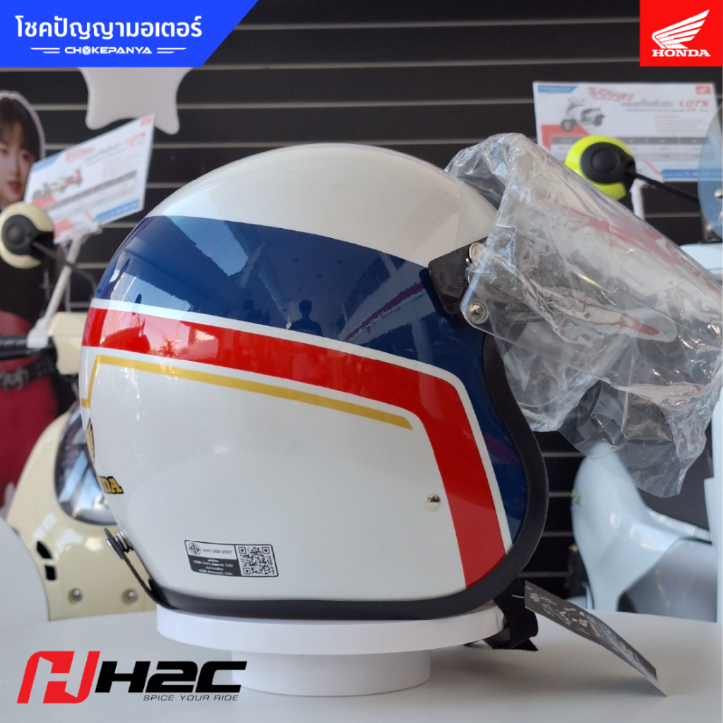 หมวกกันน็อกเปิดหน้า ขาว พร้อมชิวหน้า H2C HELMET RETRO COLLECTION ORIGINAL WHITE