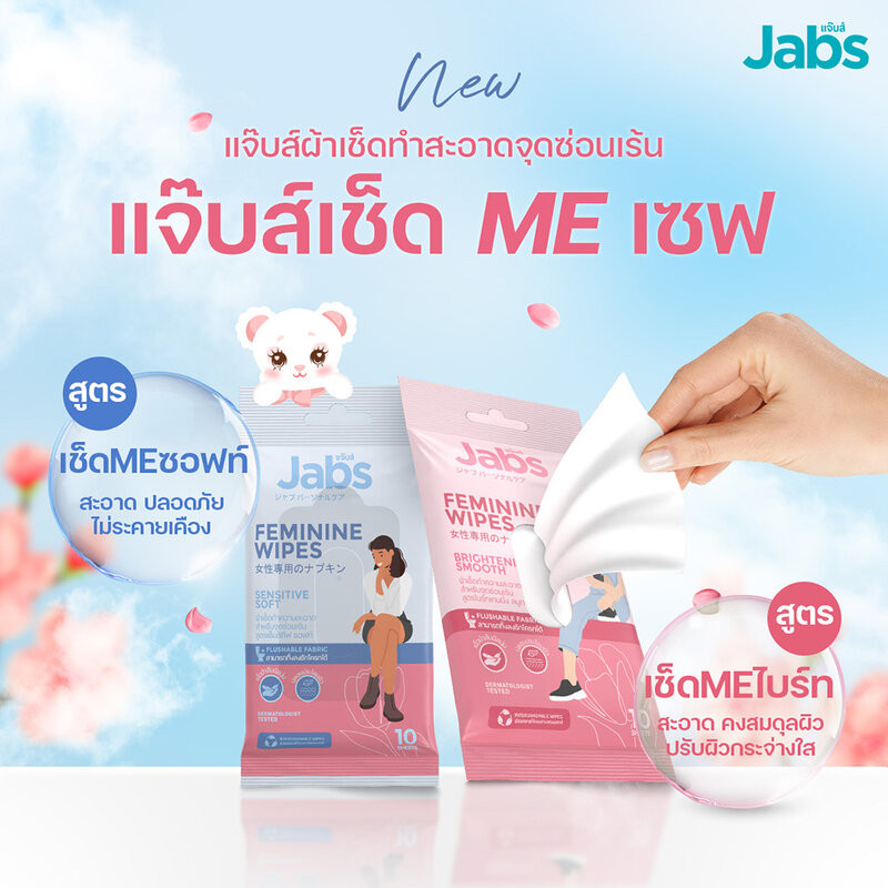 Jabs Feminine Wipes Sensitive Soft 10 Sheets ทิชชู่เปียกสำหรับจุดซ่อนเร้น 10แผ่น.