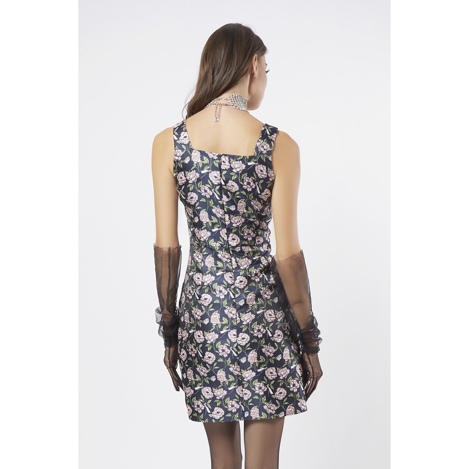 f.fashion เดรสแจ็คการ์ดลายดอกไม้ ผู้หญิง | Floral Print Jacquard Dress | 06241