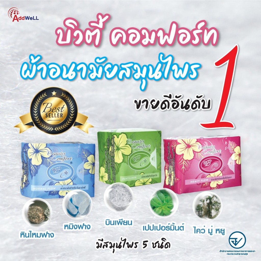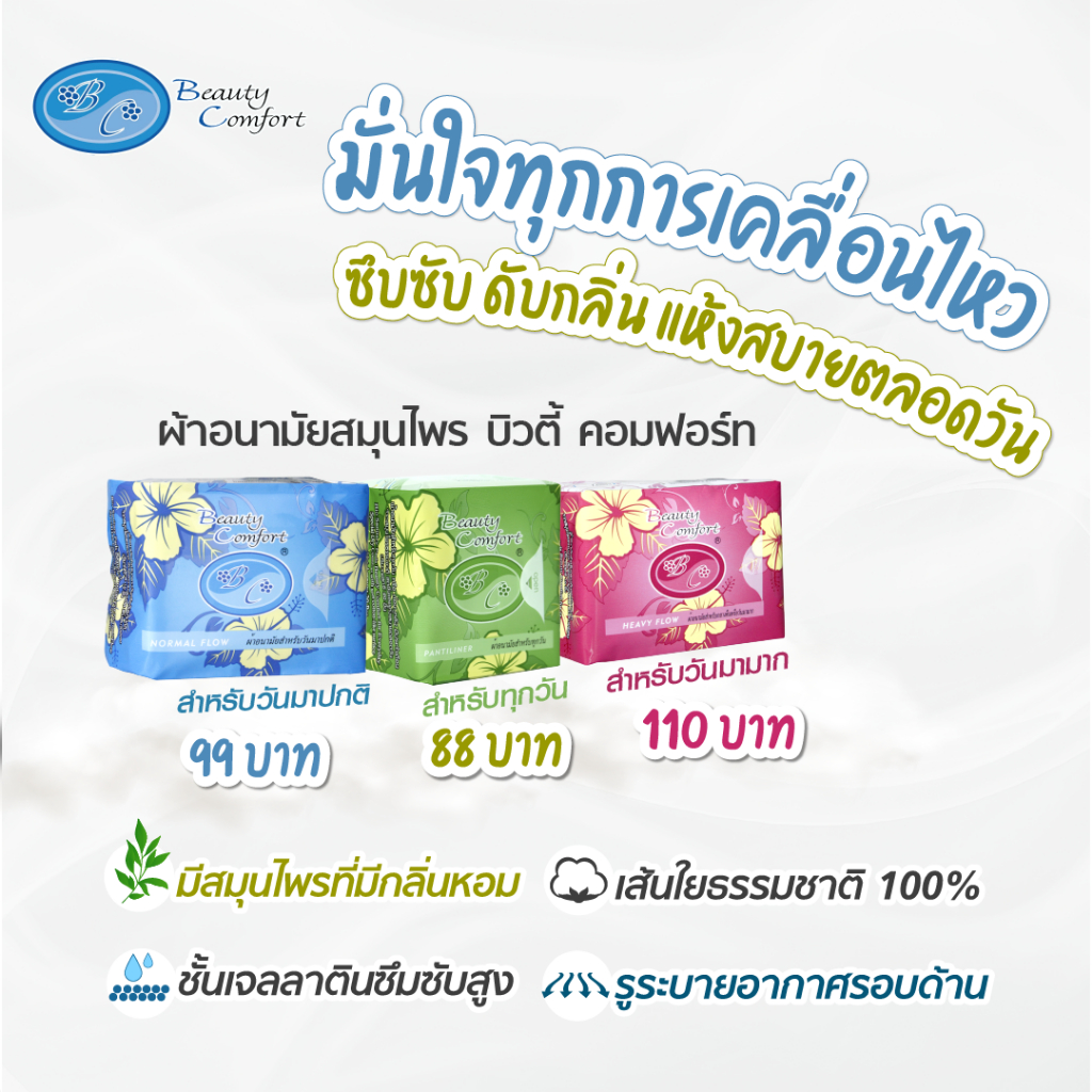 ผ้าอนามัยสมุนไพร บิวตี้ คอมฟอร์ท ซึมซับดี แห้งสบาย ดับกลิ่นได้ ไม้แพ้คัน