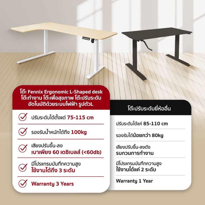 Fennix Ergonomic L-Shaped Desk โต๊ะทำงานปรับระดับไฟฟ้า รูปตัว L ดีไซน์พรีเมียม รับประกันศูนย์ไทย 3ปี