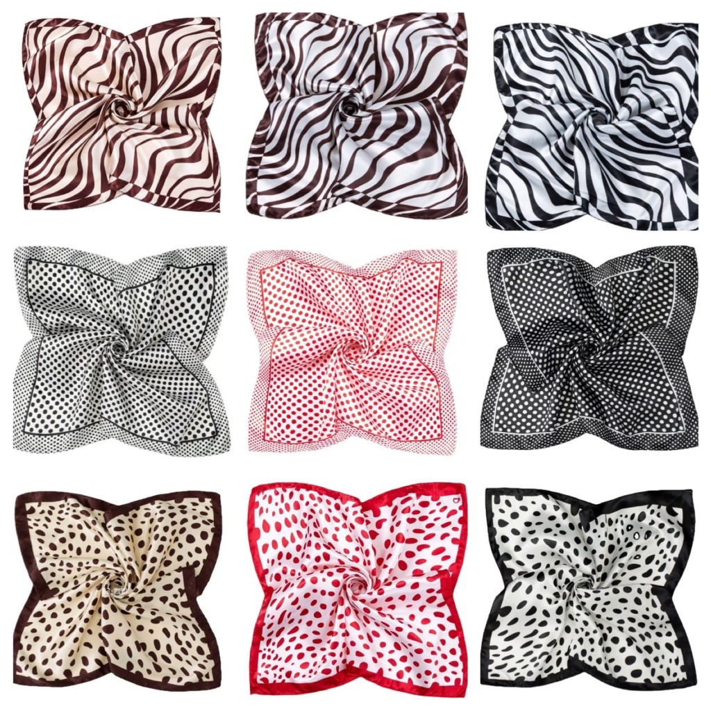 ผ้าพันคอแฟชั่น ผ้าผูกผม ผ้าไหมซาติน ขนาด 50x50cm