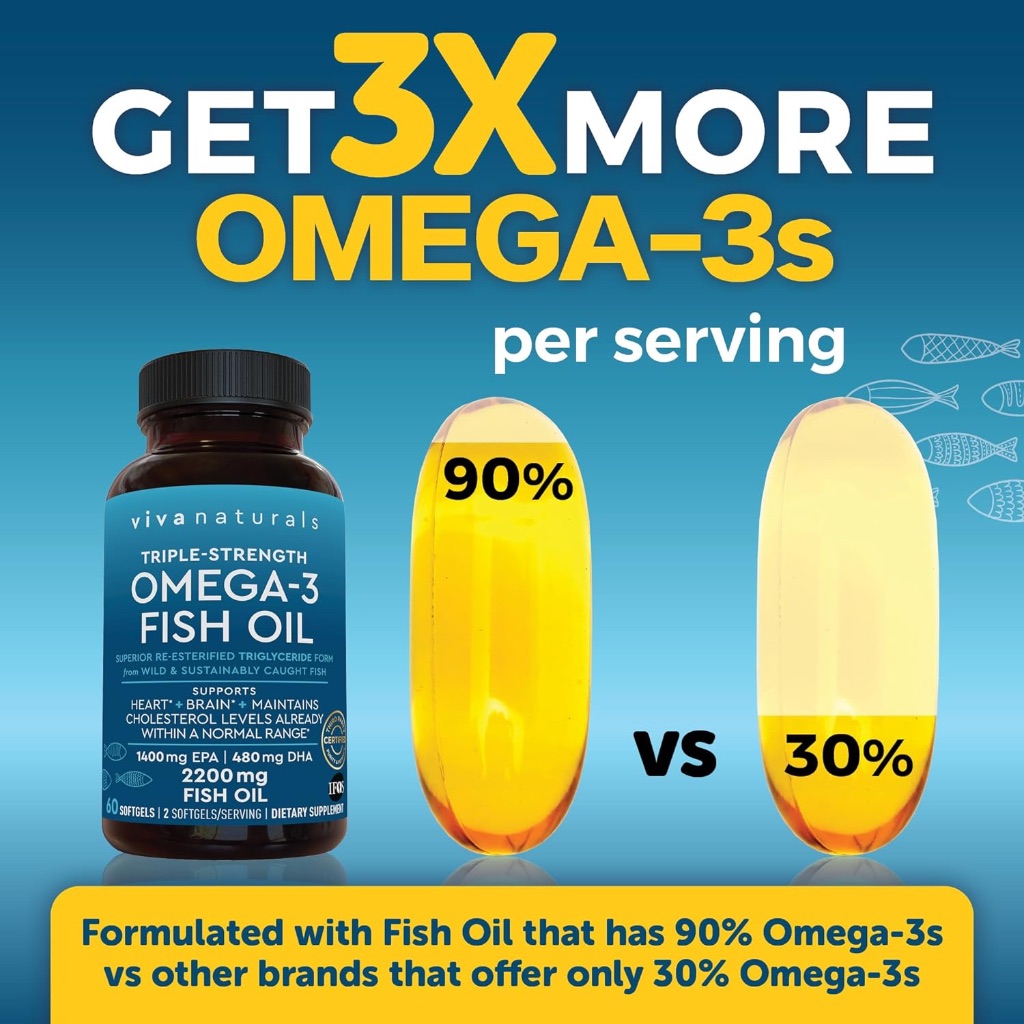 พร้อมส่ง Viva Naturals Triple Strength Omega 3 Fish Oil 2200 mg 60 Softgels