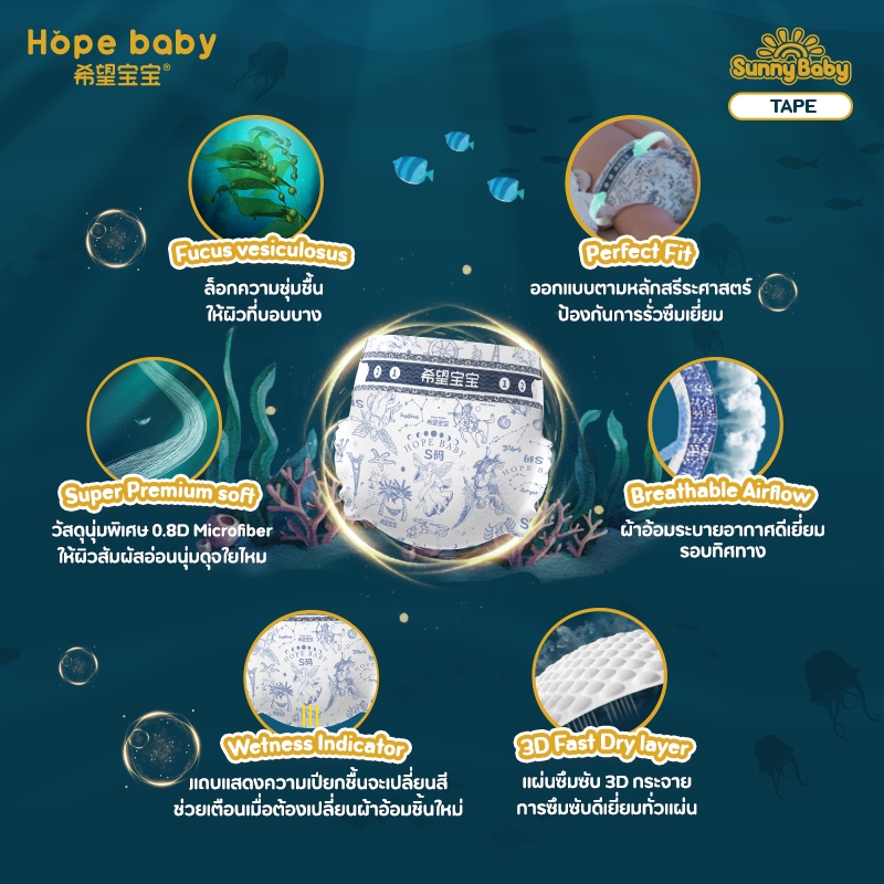 Hope Baby แพมเพิสเด็ก Sunny Baby S/M/L/XL/XXL 1แพ็ค ผ้าอ้อมนำเข้าสุดพรีเมียม ซึมซับ14ชม.