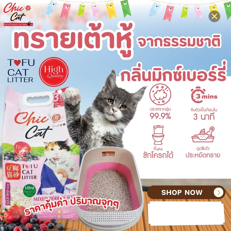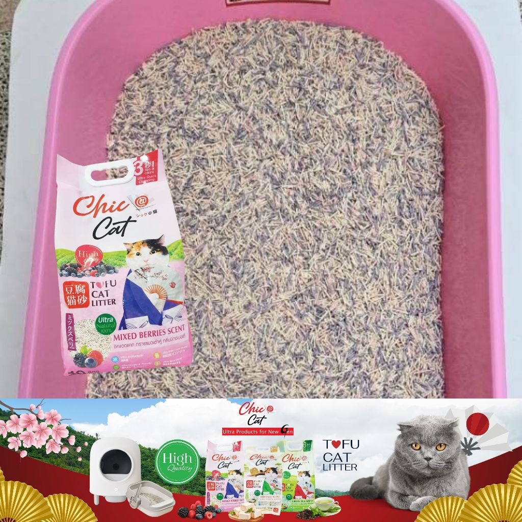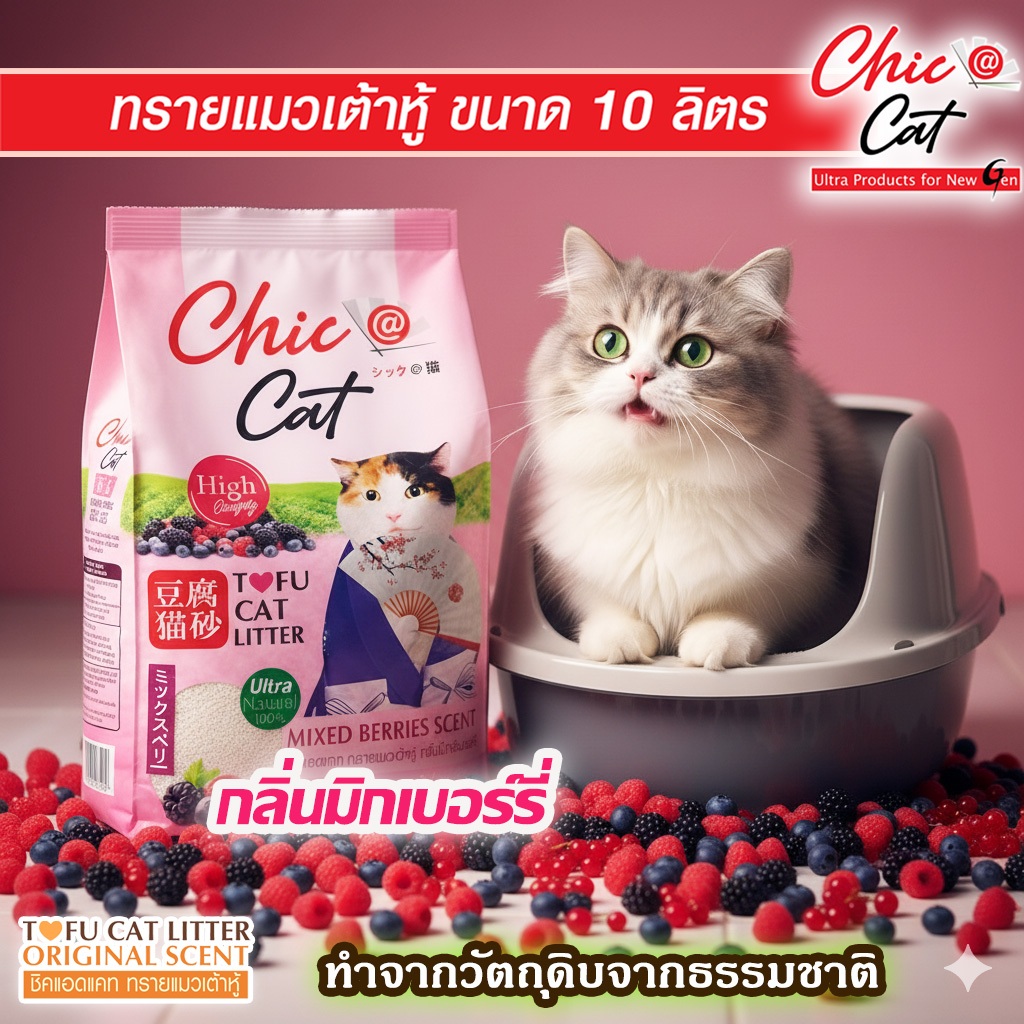 ทรายแมวเต้าหู้ กลิ่นมิกซ์เบอร์รี่ หอมกลิ่นผลไม้ ไร้กลิ่นอับ Chic@Cat 10 ลิตร