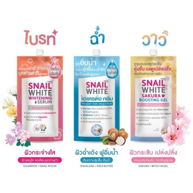 พร้อมส่ง💓| NAMU LIFE SNAILWHITE นามุ ไลฟ์ สเนลไวท์ ครีม/เซรั่ม/เจล [1กล่องx6ซอง]