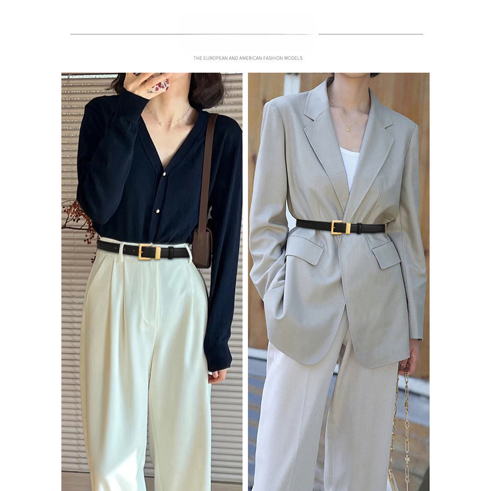 CATHLEENสุภาพสตรีหนังแท้ทุกการแข่งขันตกแต่งย้อนยุคที่เรียบง่ายระดับไฮเอนด์เข็มขัดหนังวัวสีดํา