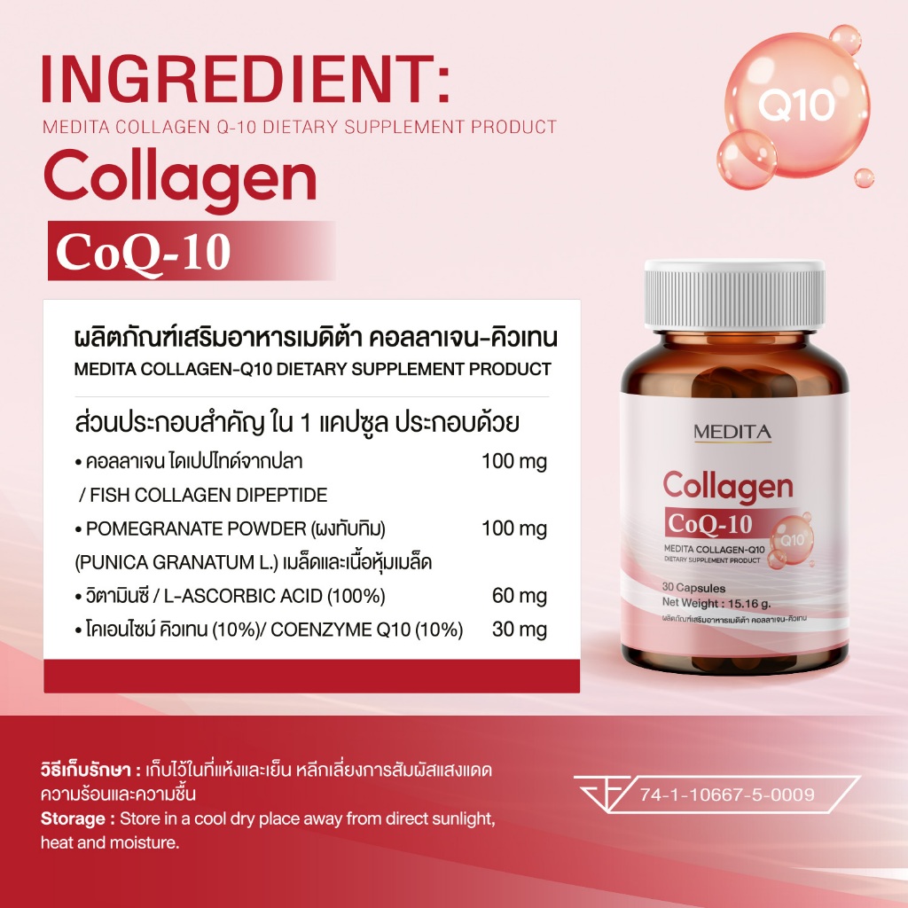 [ 2 ซอง ] MEDITA COLLAGEN-Q10T 30 CAPSULES ผลิตภัณฑ์เสริมอาหารเมดิต้า คอลลาเจน-คิวเทน 30 แคปซูล