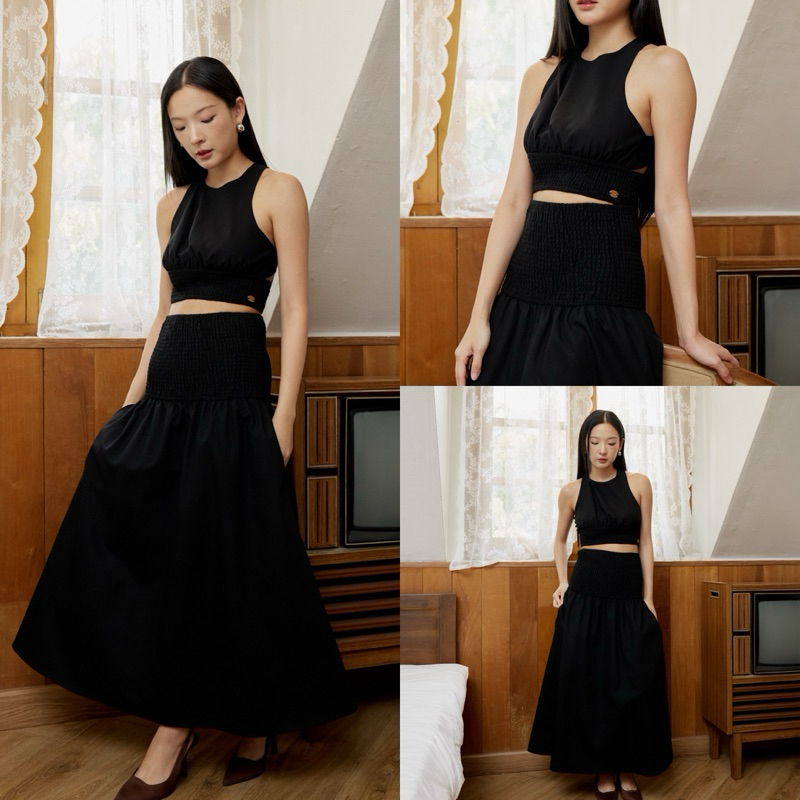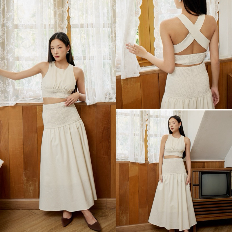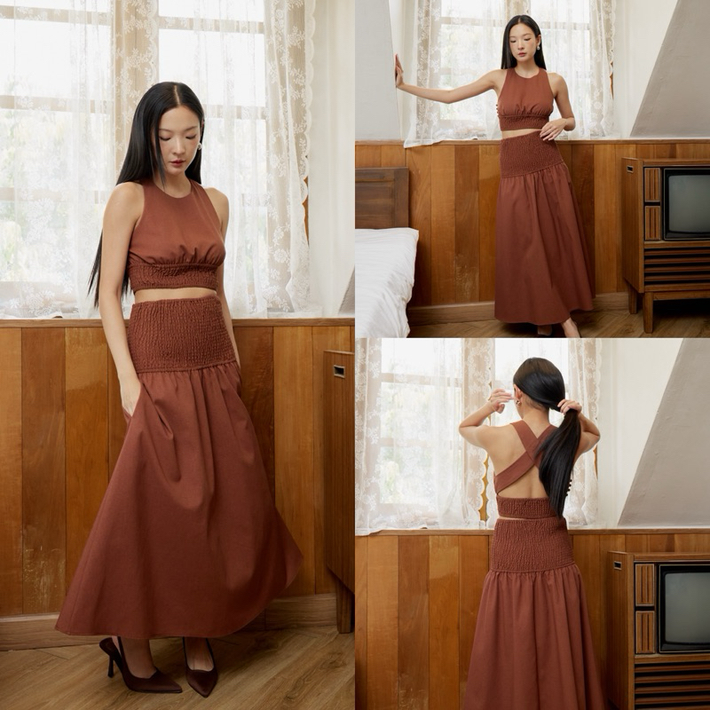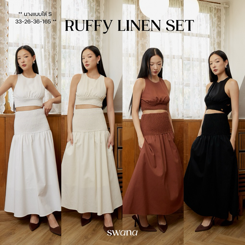“ Ruffy linen set “ (XS-XL) 💛🍋🤎 เสื้อไขว้หลัง + กระโปรงยาว ผ้าลินิน - Swana.ss
