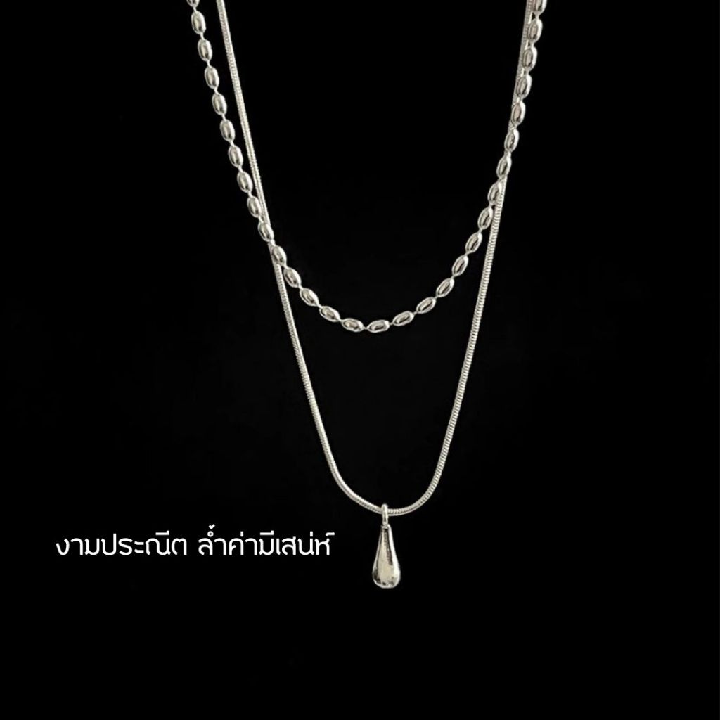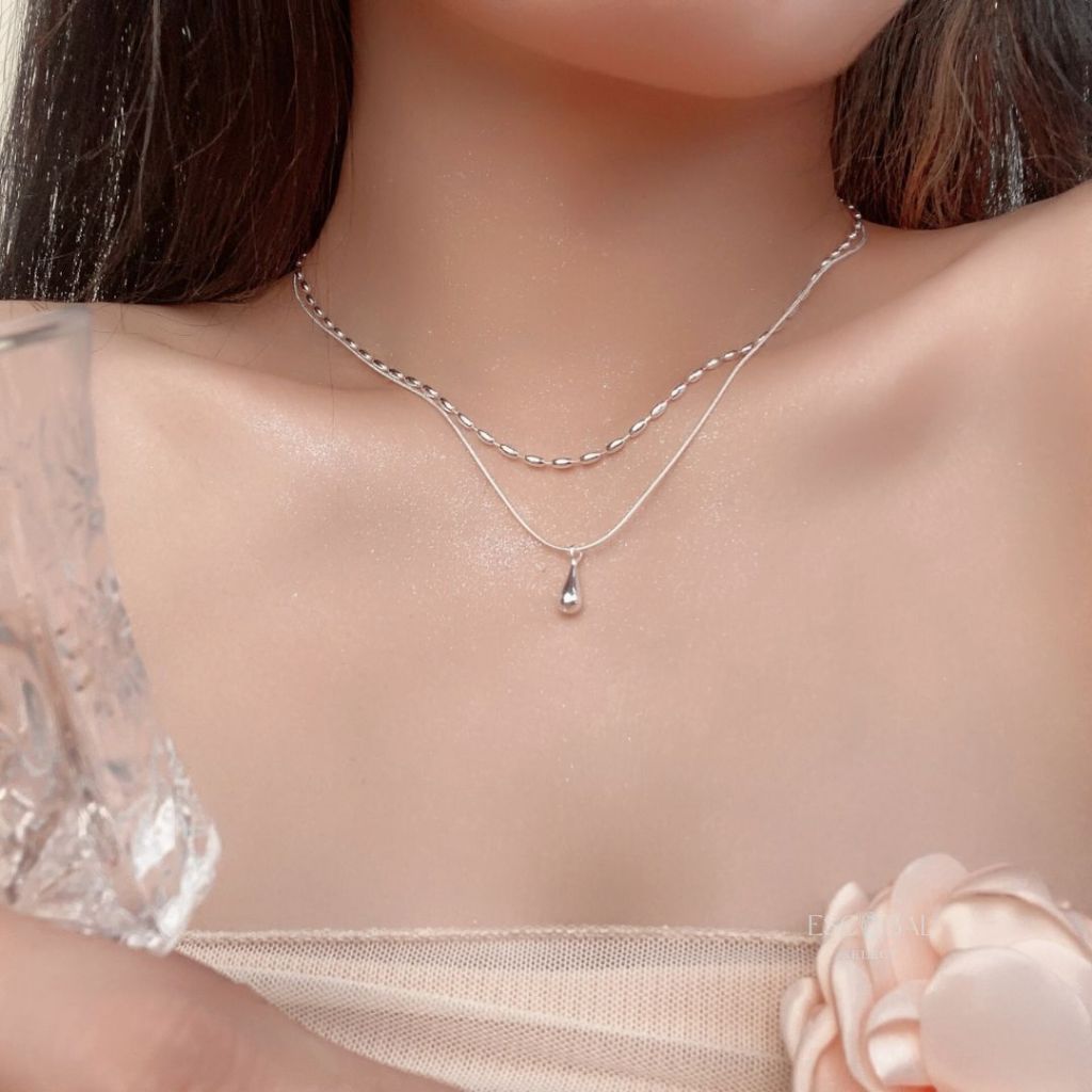 ESCOBAL สร้อยเงินแท้ Double Waterdrop สร้อยแฟชั่น สร้อยคอสองชั้น ขายดี สวยหรูนำโชคลาภ วาเลนไทน์