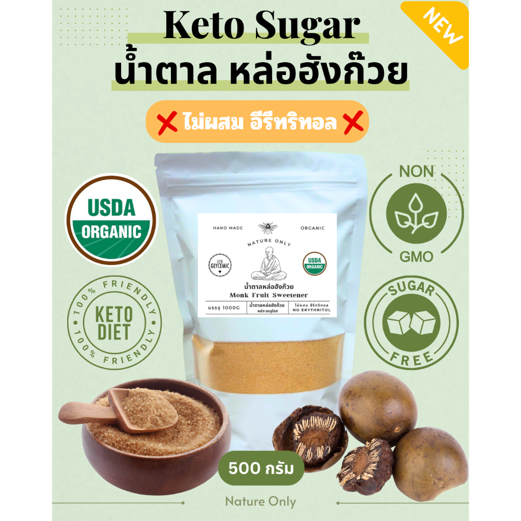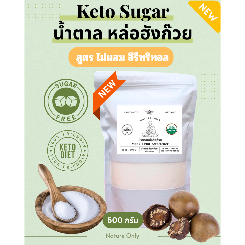 น้ำตาลหล่อฮังก๊วยพลัสออลูโลส **ไม่ผสม อีรีทริทอล** ไม่กระตุ้นอินซูลิน ให้ความหวาน 1 ต่อ 1 ใช้งานง่าย