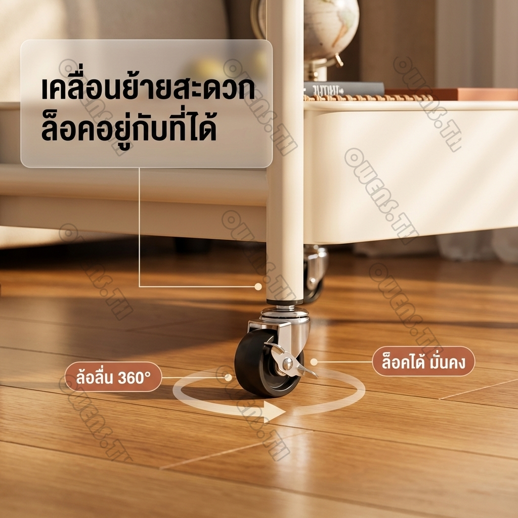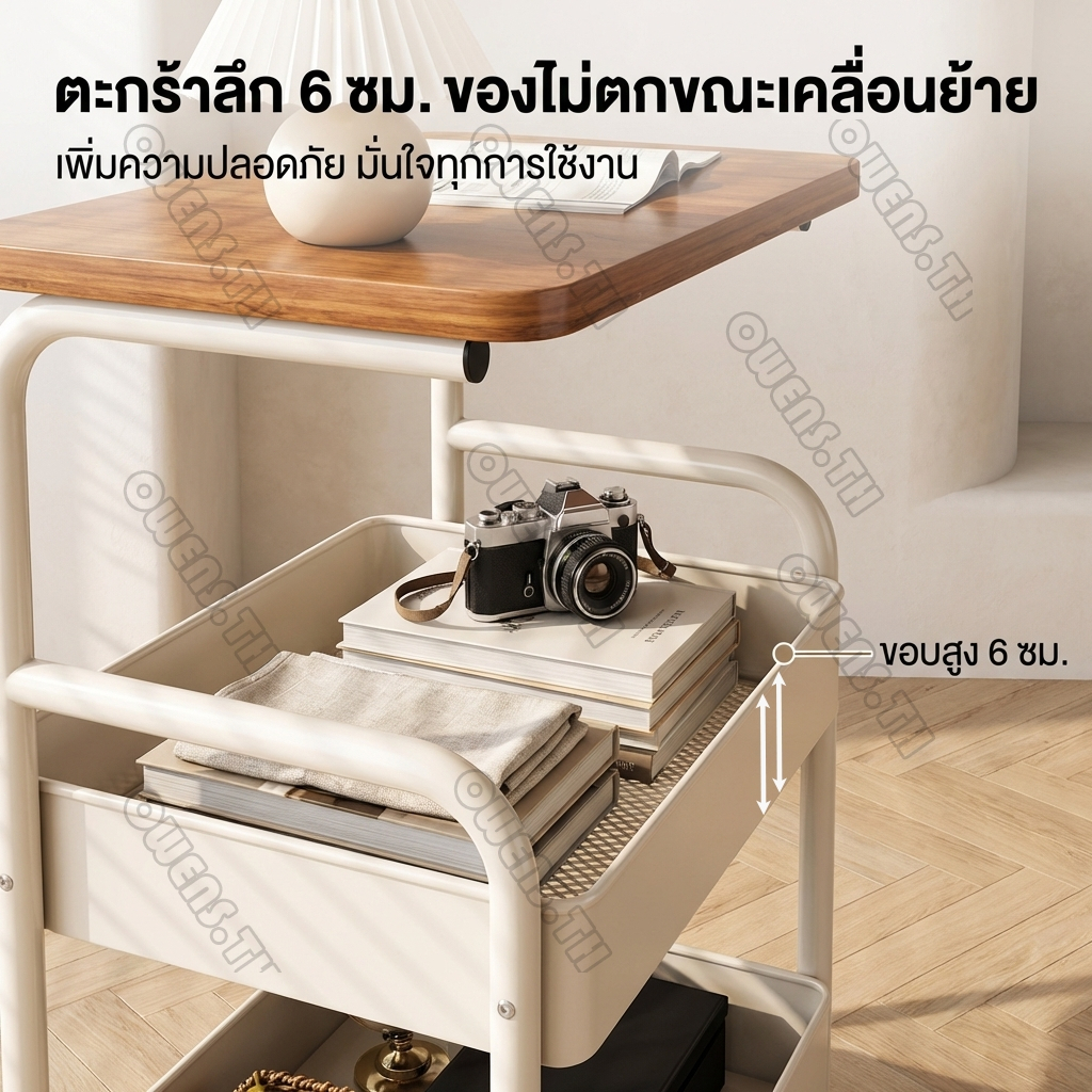 Owens💥ชั้นวางของ 3ชั้น ชั้นวางของรถเข็น 43*30*77โต๊ะกาแฟ พร้อมล้อเลื่อน+ที่จับ เหล็ก + ไม้ แข็งแรงกันสนิม พื้นที่จัดเก็บ