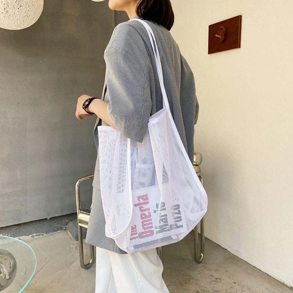 HOBBYIN กระเป๋าสะพายไหล่ ผ้าตาข่าย แบบใส ใช้ซ้ําได้ แบบพกพา