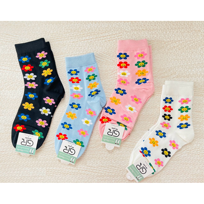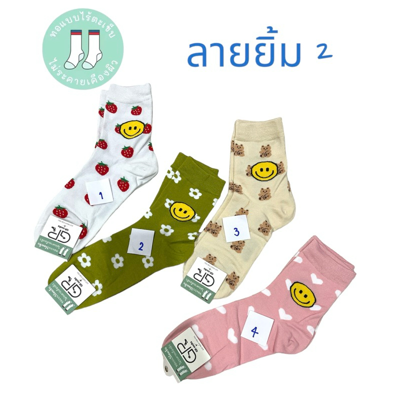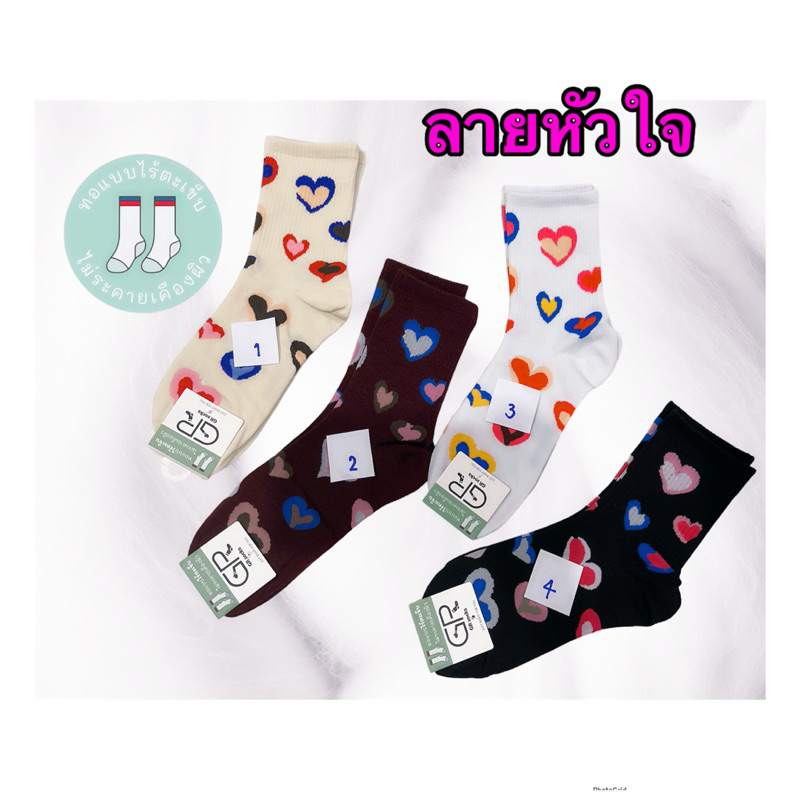ถุงเท้าข้อกลางป้าย GR ทอแบบไร้ตะเข็บ มีหลายแบบให้เลือก