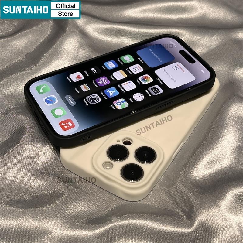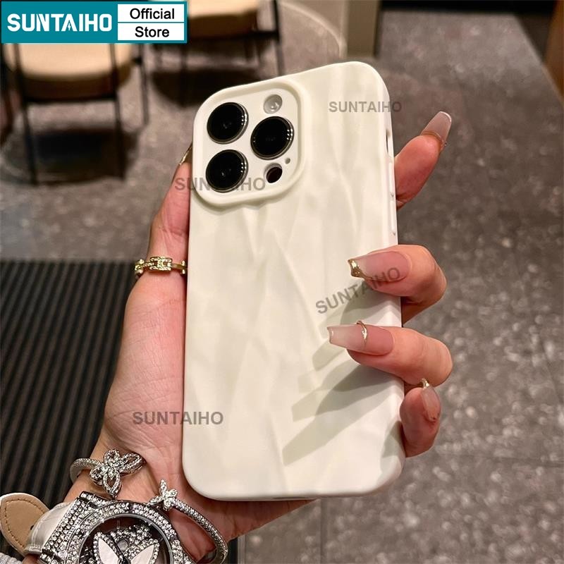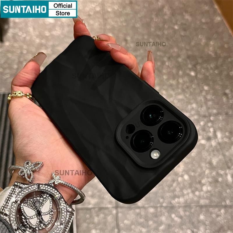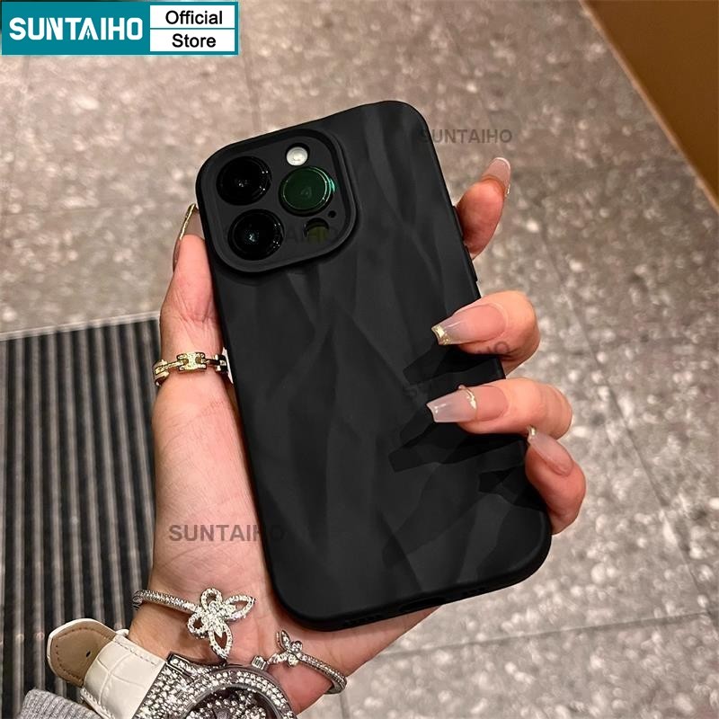 SUNTAIHO Suntaihoแฟชั่นSolid Frosting Waveซิลิโคนสีดํานุ่มเคสโทรศัพท์สําหรับIphone 17 16 15 14 12 13 11 Pro Max IP 7 8 Plus Iphon X XS XR Xs Max Thickenกันกระแทกปกหลัง